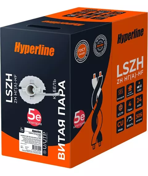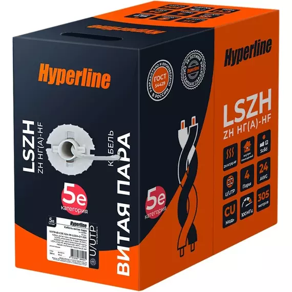 Кабель информационный Hyperline UUTP4R-C5E-S24-IN-LSZH-GY-305 кат.5E UTP 4 пары 24AWG LSZH внутренний 305м серый