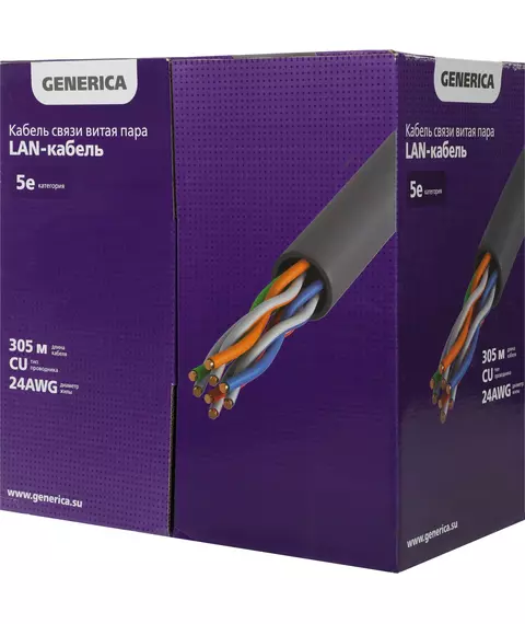 Кабель ITK BC1-C5E04-311-305-G Generica кат.5E FTP 4 пары 24AWG PVC внутренний 305м серый