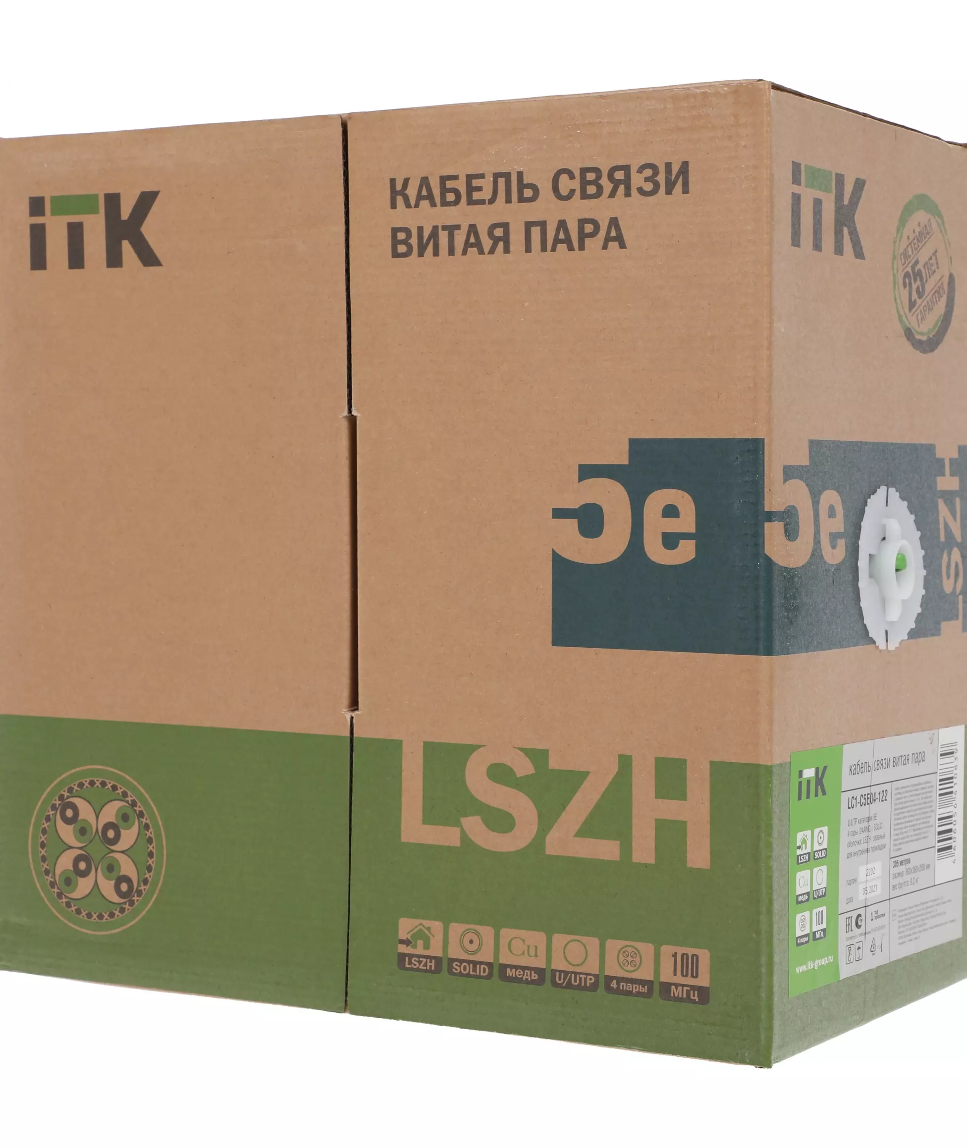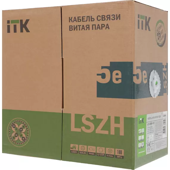 Кабель информационный ITK LC1-C5E04-122 кат.5E UTP 4 пары 24AWG нг(А)-LSLTx внутренний 305м зеленый