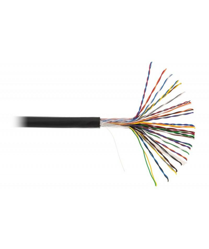 Неэкранированный 25-парный кабель категории 5 предназначен для внешней прокладки. Медные одножильные проводники обеспечивают пропускную способность до 100 Мбит/с. Материал внешней оболочки – полиэтилен чёрного цвета. Кабель рассчитан эксплуатацию при температуре от -40 до +60 °С. Защитная плёнка из полиэстера в составе кабеля предотвращает случайное повреждение изоляции жил при монтаже. Растягивающее усилие составляет не более 400 Ньютонов. Поставляется бухтами по 305 м на фанерных барабанах.