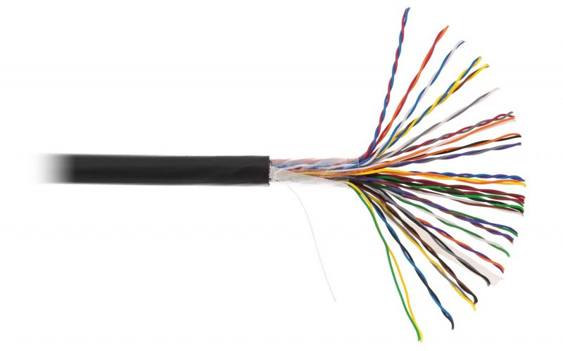 Неэкранированный 25-парный кабель категории 5 предназначен для внешней прокладки. Медные одножильные проводники обеспечивают пропускную способность до 100 Мбит/с. Материал внешней оболочки – полиэтилен чёрного цвета. Кабель рассчитан эксплуатацию при температуре от -40 до +60 °С. Защитная плёнка из полиэстера в составе кабеля предотвращает случайное повреждение изоляции жил при монтаже. Растягивающее усилие составляет не более 400 Ньютонов. Поставляется бухтами по 305 м на фанерных барабанах.