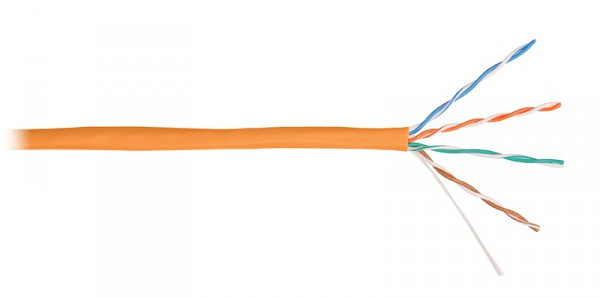 Кабель Nikolan NKL 4100C-OR U/UTP 4 пары, Кат.5e (Класс D), тест по ISO/IEC, 100МГц, одножильный, BC (чистая медь), 24AWG (0,50мм), внутренний, LSZH нг(А)-HFLTx, оранжевый, 305м - гарантия: 1 год / 10 лет системная