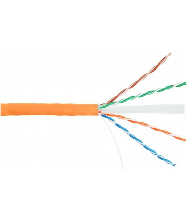 Кабель Nikolan NKL 4140C-OR U/UTP 4 пары, Кат.6 (Класс E), тест по ISO/IEC, 250МГц, одножильный, 23AWG (0,57мм), внутренний, LSZH нг(В)-HFLTx, оранжевый, 305м - гарантия: 1 год базовая / 10 лет системная