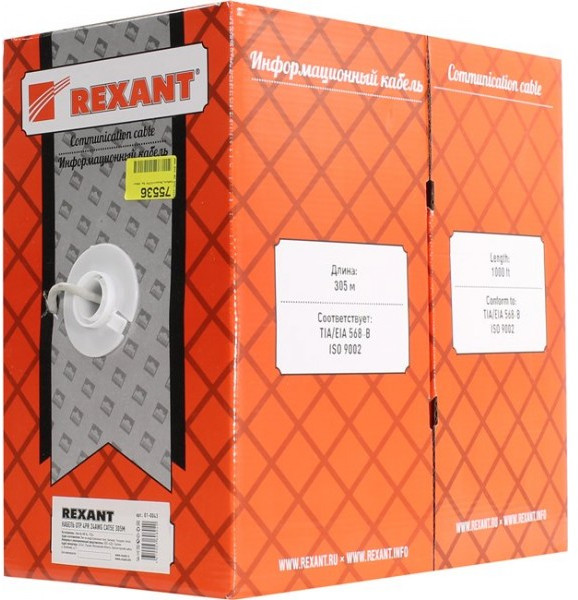 Описание Кабель Rexant UTP 4 пары кат.5e бухта 305м [01-0043]