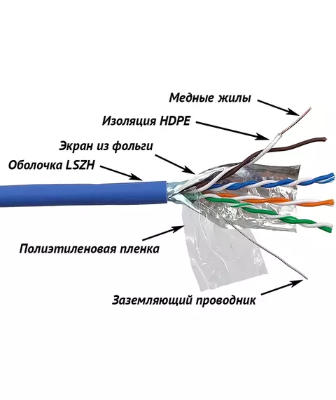 Кабель Lanmaster LAN-5EFTP-LSZH-BL кат.5E FTP 4 пары 24AWG LSZH внутренний 305м синий