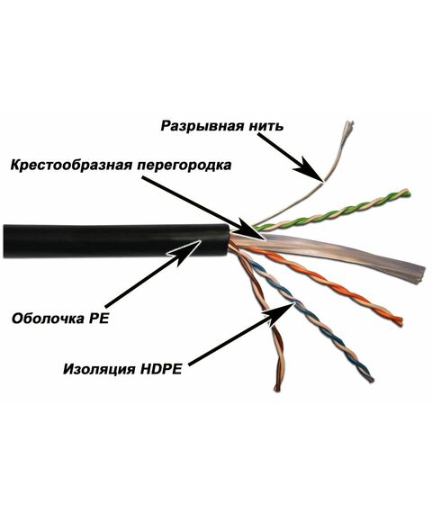 Кабель информационный Lanmaster LAN-6EUTP-OUT кат.6 UTP 4 пары 23AWG PE 305м черный