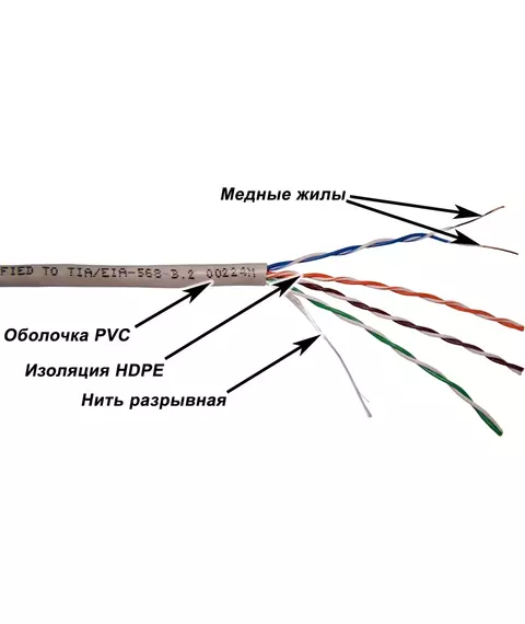 Кабель сетевой Lanmaster TWT-5EUTP кат.5E UTP 4 пары 24AWG PVC внутренний 305м серый