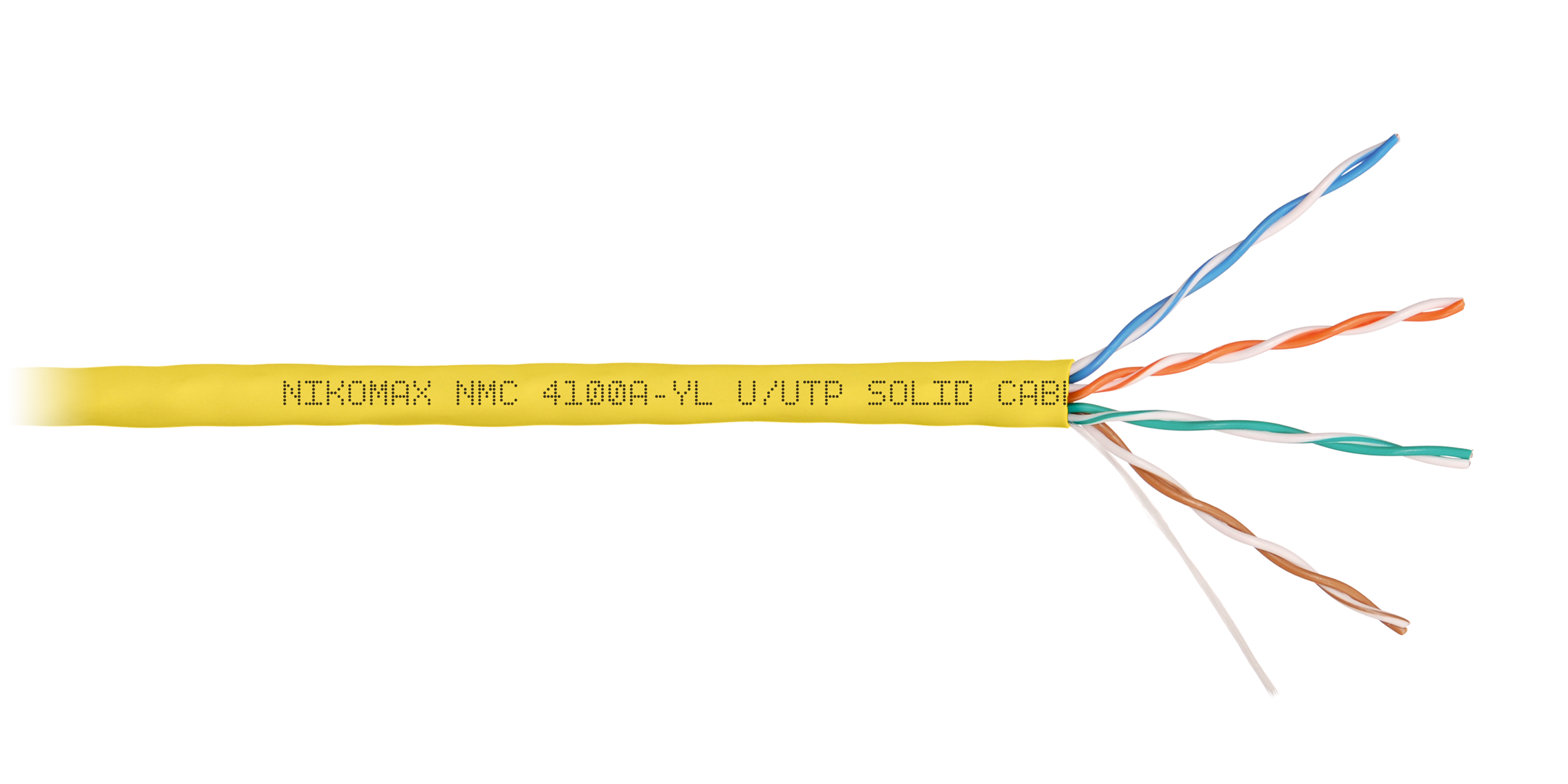 Кабель NMC 4100A-xx выполнен в неэкранированном исполнении U/UTP, соответствует категории 5e и предназначен для внутренней прокладки. Внешняя оболочка изготавливается из не распространяющего горение при одиночной прокладке, поливинилхлорида