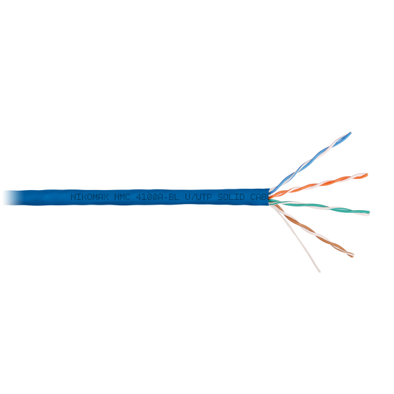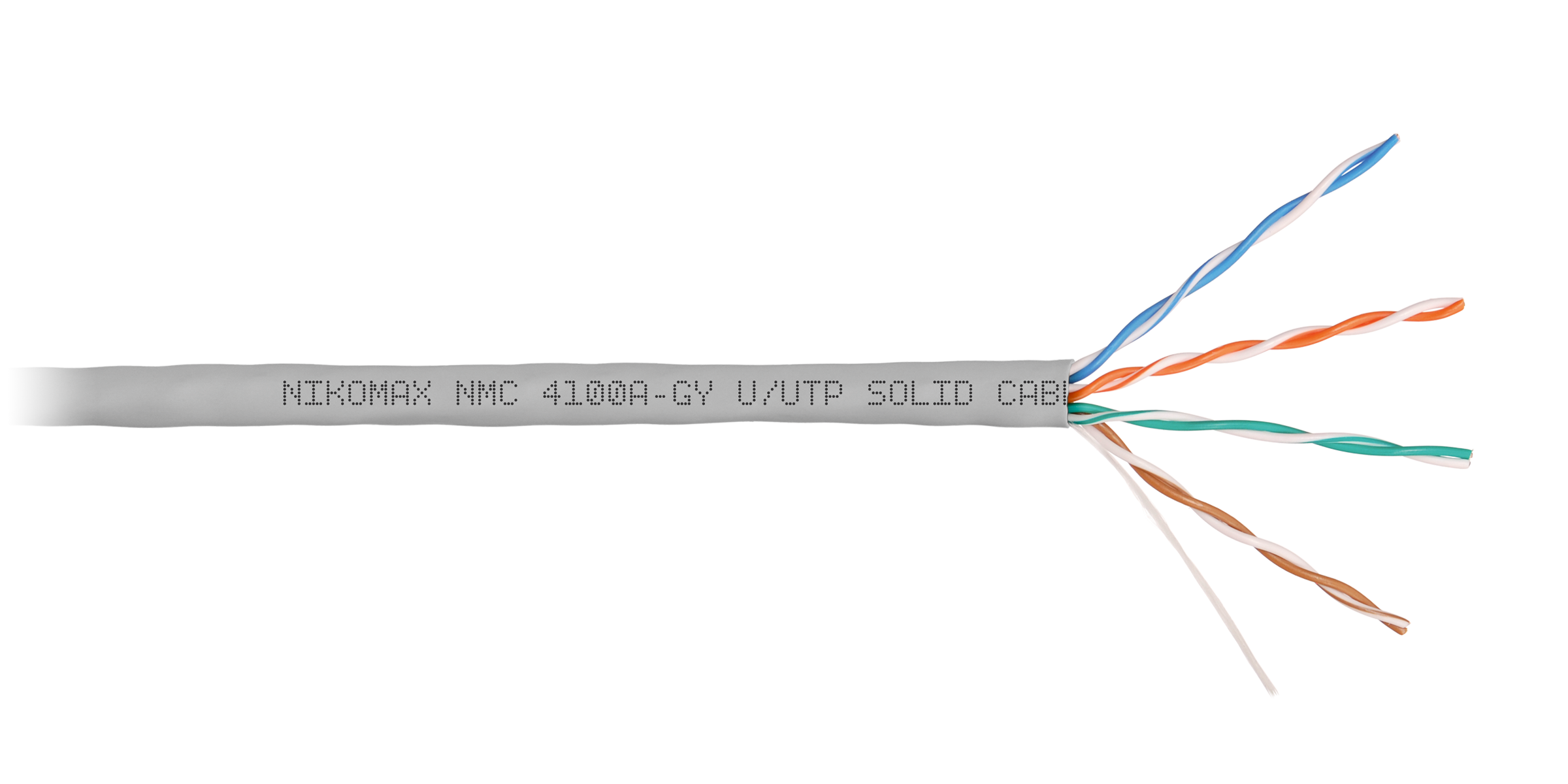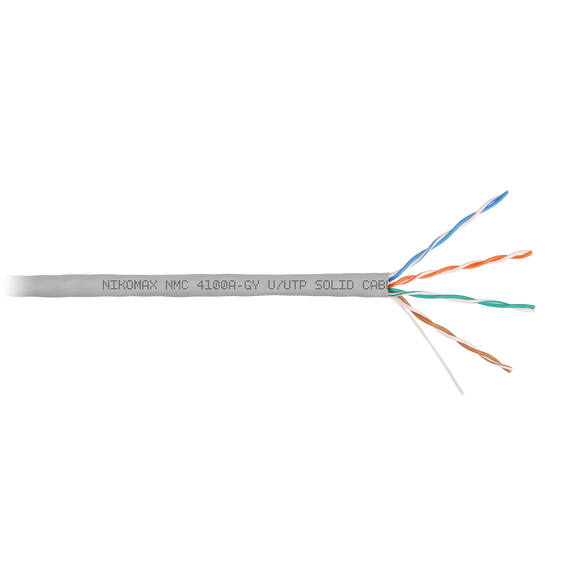 Кабель Nikomax NMC 4100A-GY U/UTP 4 пары, Кат.5e (Класс D), тест по ISO/IEC, 100МГц, одножильный, BC (чистая медь), 24AWG (0,51мм), поливинилхлорид, внутренний, серый, 305м