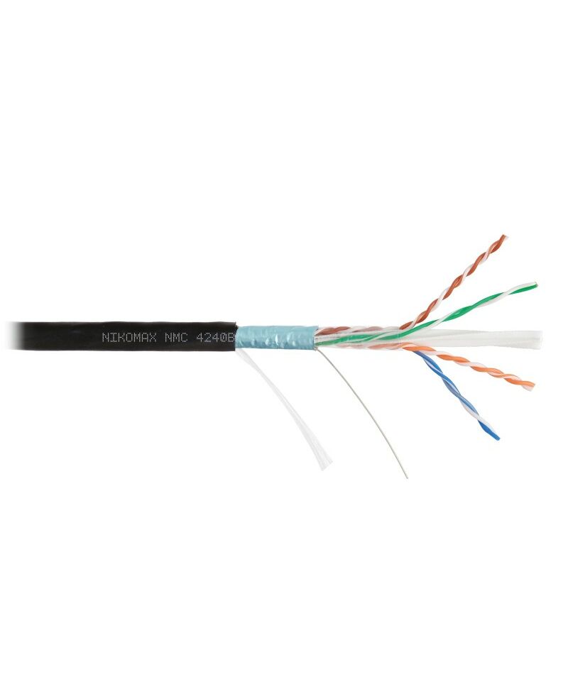 Кабель Nikomax NMC 4240B-BK F/UTP 4 пары, Кат.6 (Класс E), тест по ISO/IEC, 250МГц, одножильный, BC (чистая медь), 23AWG (0,55мм), полиэтилен, внешний, черный, 305м