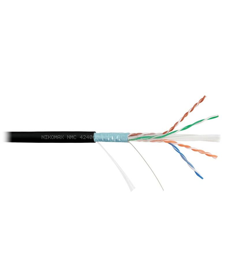 Кабель Nikomax NMC 4240C-BK F/UTP 4 пары, Кат.6 (Класс E), тест по ISO/IEC, 250МГц, одножильный, BC (чистая медь), 23AWG (0,55мм), полимерный материал нг(А)-HF, внутренний/внешний, черный, 305м