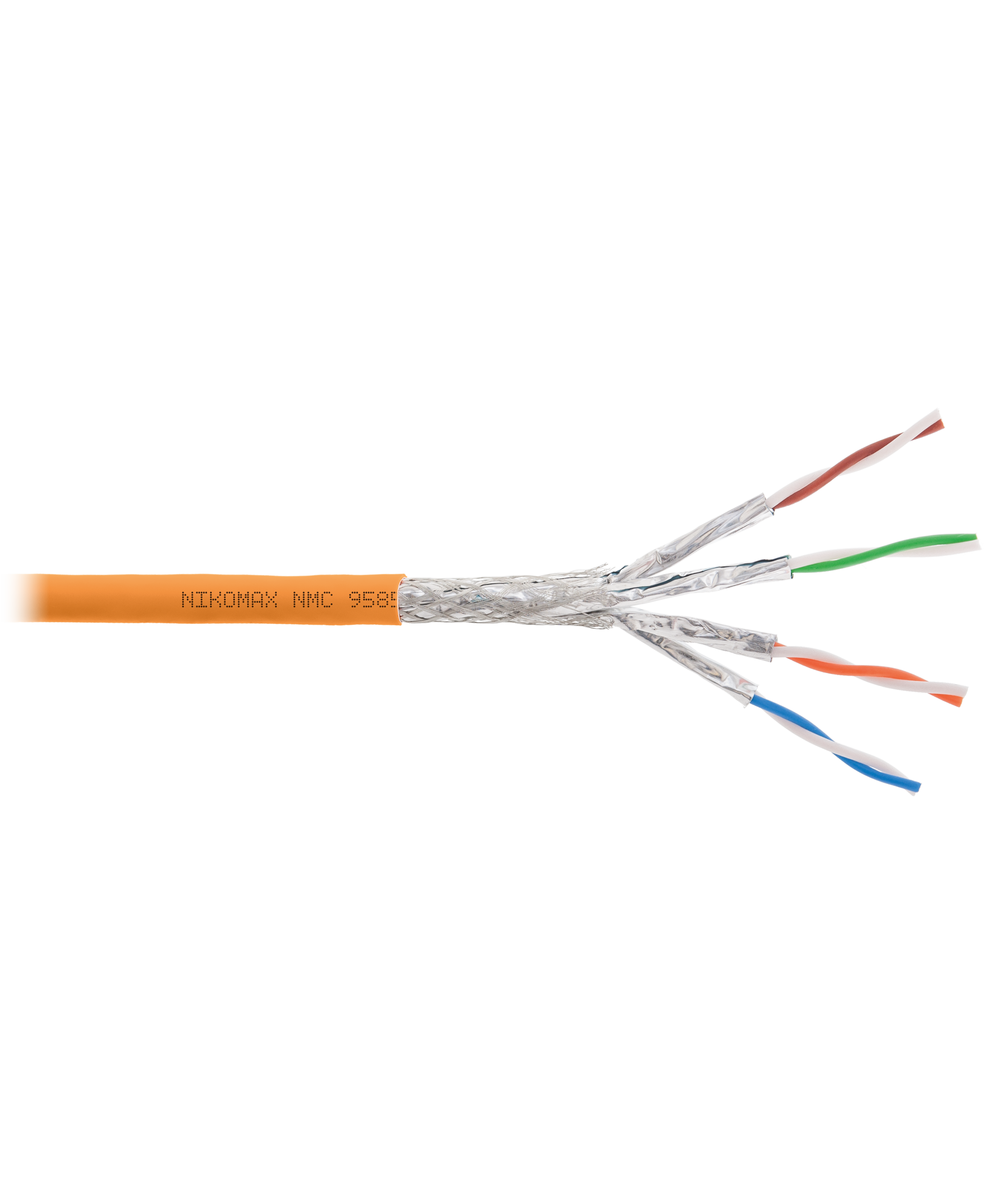 получает системную поддержку на 25 летКабель NMC 9585C-OR выполнен в экранированном исполнении S/FTP, соответствует категории 8 и предназначен для внутренней прокладки. Внешняя оболочка выполнена из не распространяющего горение при групповой прокладке и не выделяющего коррозионно-активных газообразных продуктов при горении и тлении, полимерного материала в исполнении нг(A)-HF.