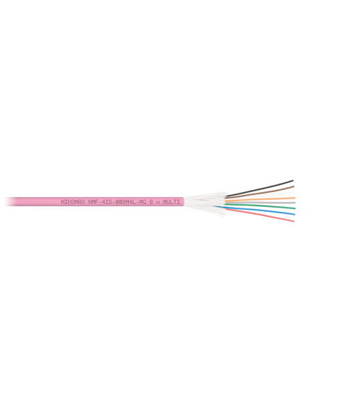 Кабель волоконно-оптический Nikomax NMF-4IS-024M4L-MG 24 волокна, многомодовый 50/125мкм, стандарта OM4, внутренний, распределительный, с плотным буфером, силовой элемент — стеклонити, полимерный материал нг(A)-LSLTx, маджента