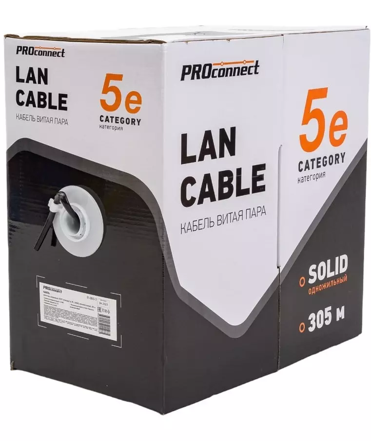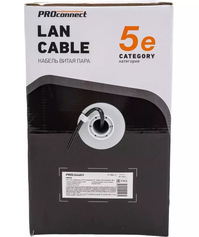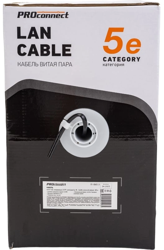 Кабель информационный PROconnect 01-0045-3 кат.5E UTP 4 пары 24AWG PE внешний 305м черный