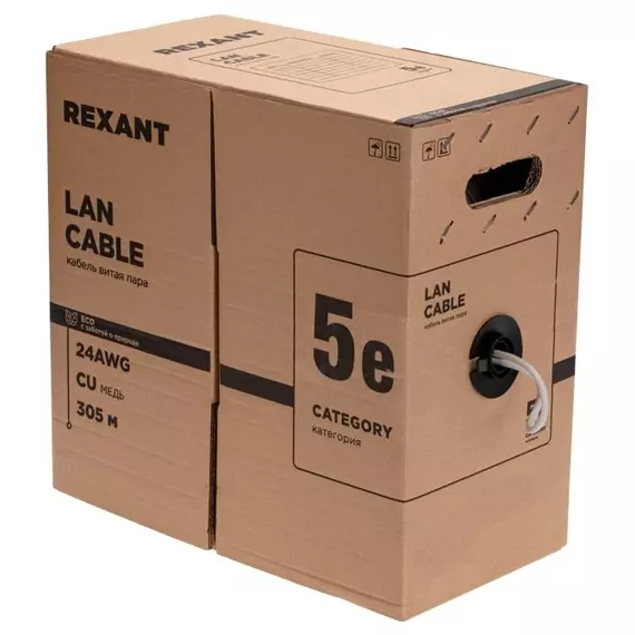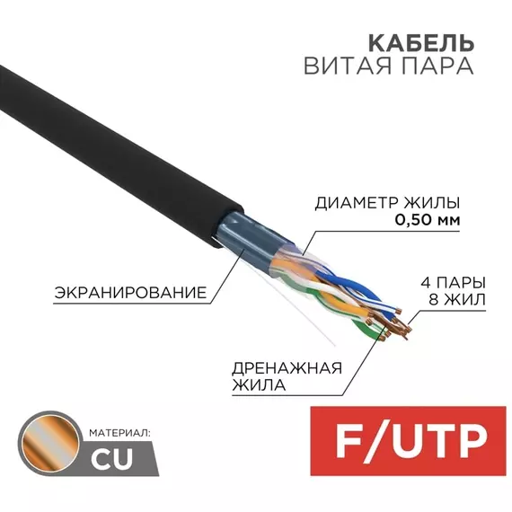Кабель сетевой информационный Rexant 01-0146-R кат.5E F/UTP 4 пары 24AWG PE внешний 305м черный