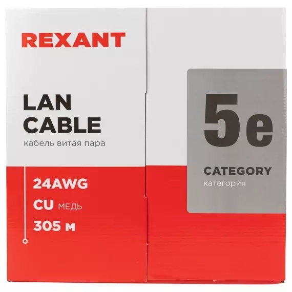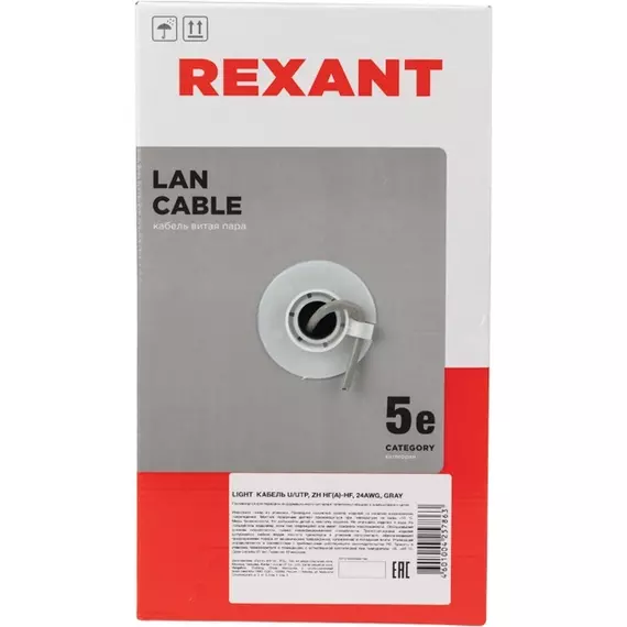 Кабель информационный Rexant кат.5E UTP 4 пары 24AWG нг(А)-HF внутренний 305м серый [01-0059]