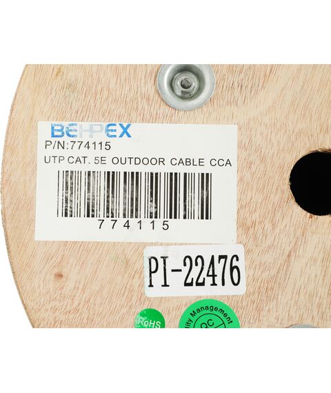 Кабель сетевой UTP 4 пары cat.5E solid 0.50мм CCA 305м черный outdoor