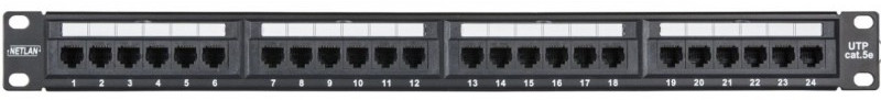 Коммутационная панель Netlan EC-URP-24-UD2 19", 1U, 24 порта, Кат.5e (Класс D), 100МГц, RJ45/8P8C, 110/KRONE, T568A/B, неэкранированная, черная