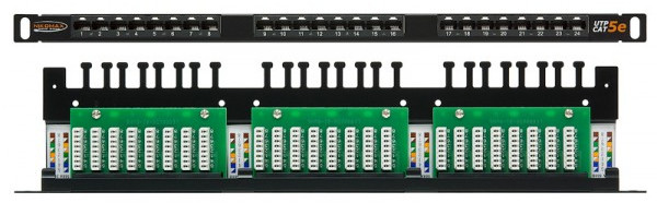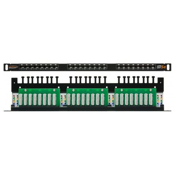 Патч-панель Nikomax NMC-RP24UD2-HU-BK 19", 0,5U, 24 порта, Кат.5e, RJ45/8P8C, 110/KRONE, T568A/B, неэкранированная, с органайзером, черная