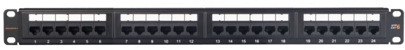 - Неэкранированные патч-панели NMC-RP24UE2-ES-1U-BK выполнены в черном цвете и предназначены для монтажа в 19” шкаф или стойку. Данная панель имеет стандартную высоту 1U и вмещает 24 порта RJ45/8P8C. Особый дизайн контактов также позволяет использовать для заделки кабелей ножи типа KRONE