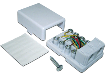 Двухпортовая телефонная розетка с портами RJ-12, предопределена для монтажа на стенку .Порты розетки – гнезда RJ-12 с контактами, подключаемыми при поддержке винтов.