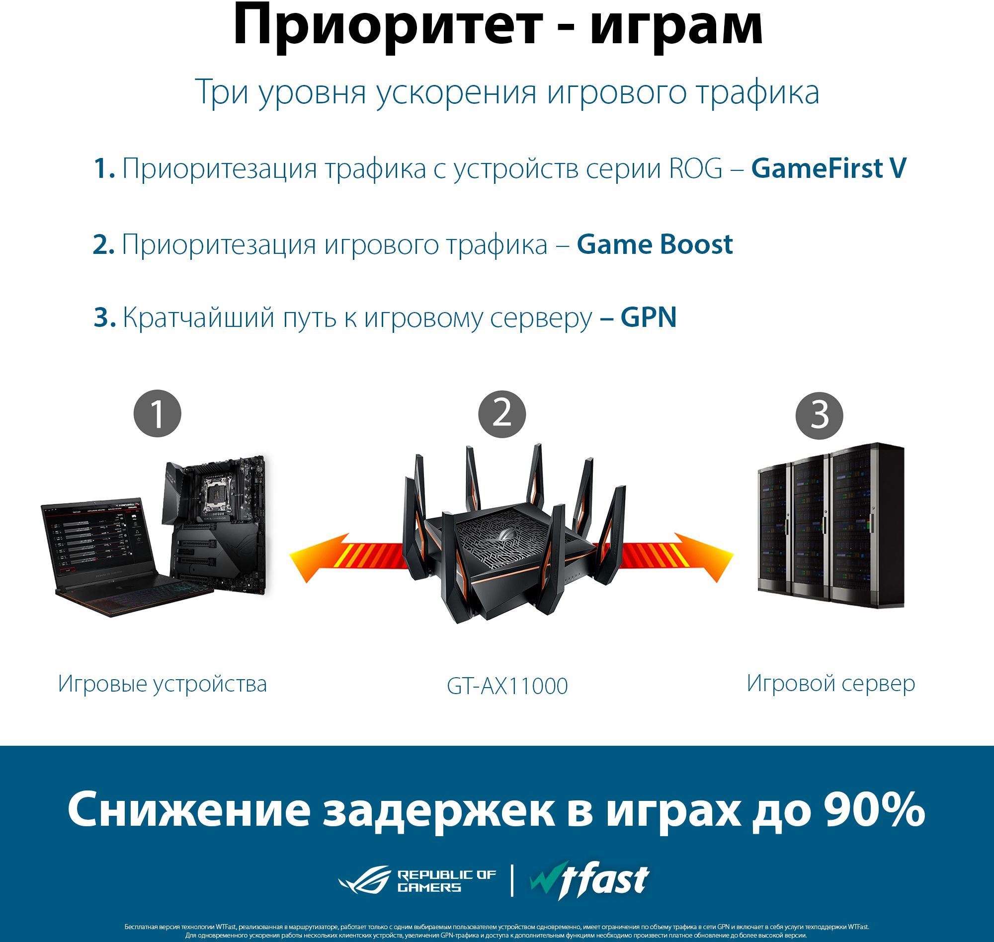 Роутер беспроводной Asus GT-AX11000 AX11000 10/100/1000BASE-TX/4G ready черный