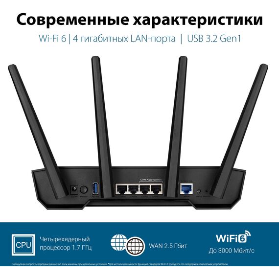 | Поддержка технологий | Beamforming, DHCP-сервер, Dynamic DNS (DDNS), FTP-сервер, MESH, QoS, VPN, WPS, поддержка IPTV, протокол IPv6 |