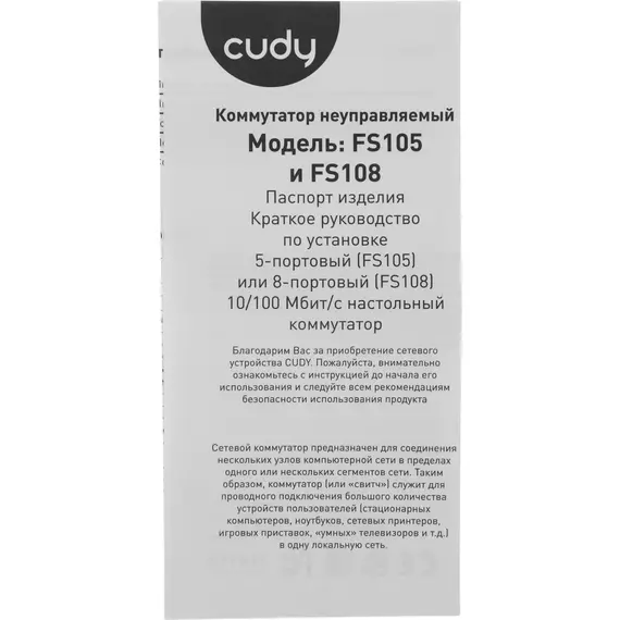 Коммутатор Cudy FS105 (L2) 5x100Мбит/с неуправляемый