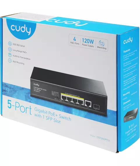Коммутатор Cudy GS1005PTS1 (L2) 5x1Гбит/с 1SFP 4PoE+ 120W неуправляемый