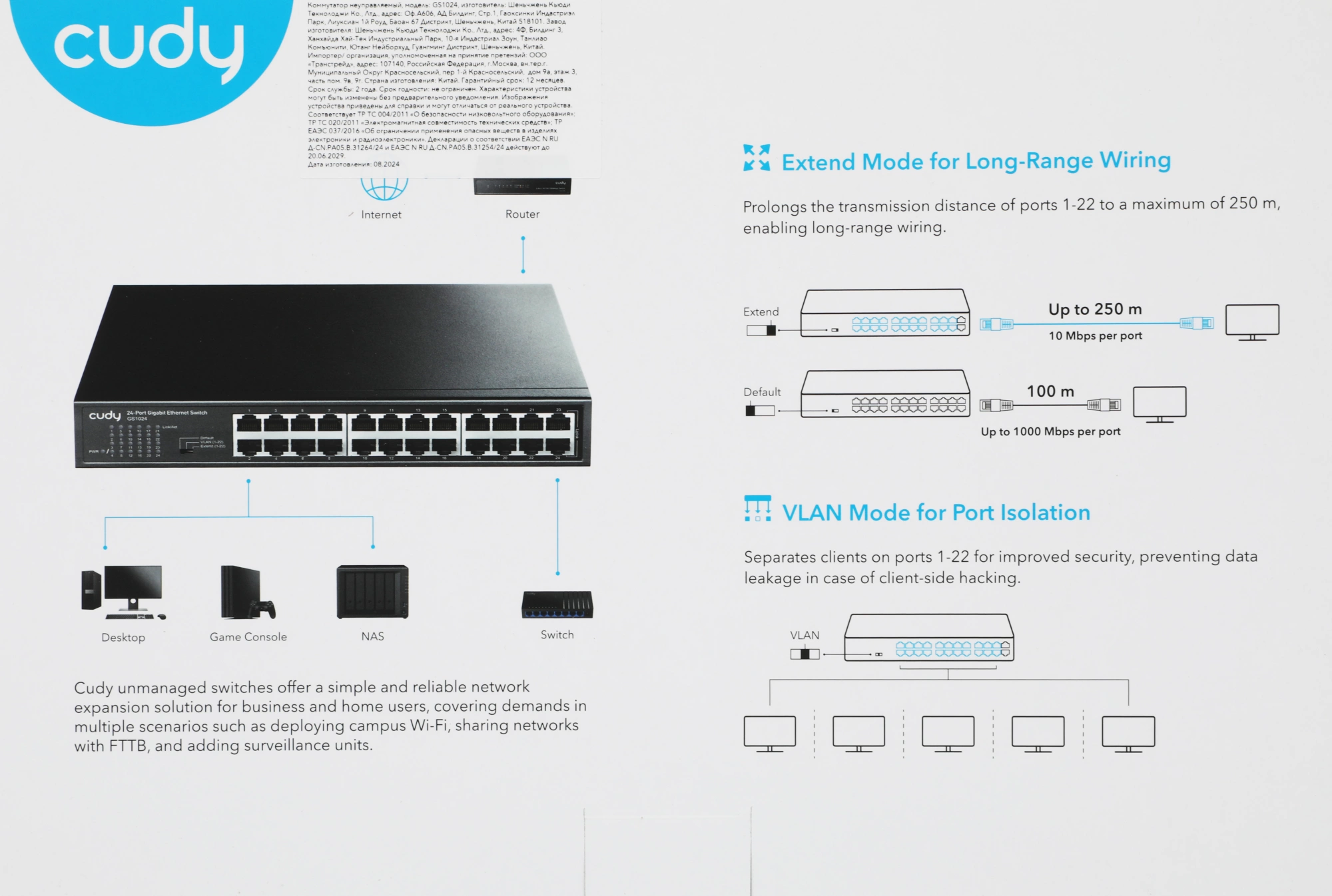 Коммутатор Cudy GS1024 (L2) 24x1Гбит/с неуправляемый