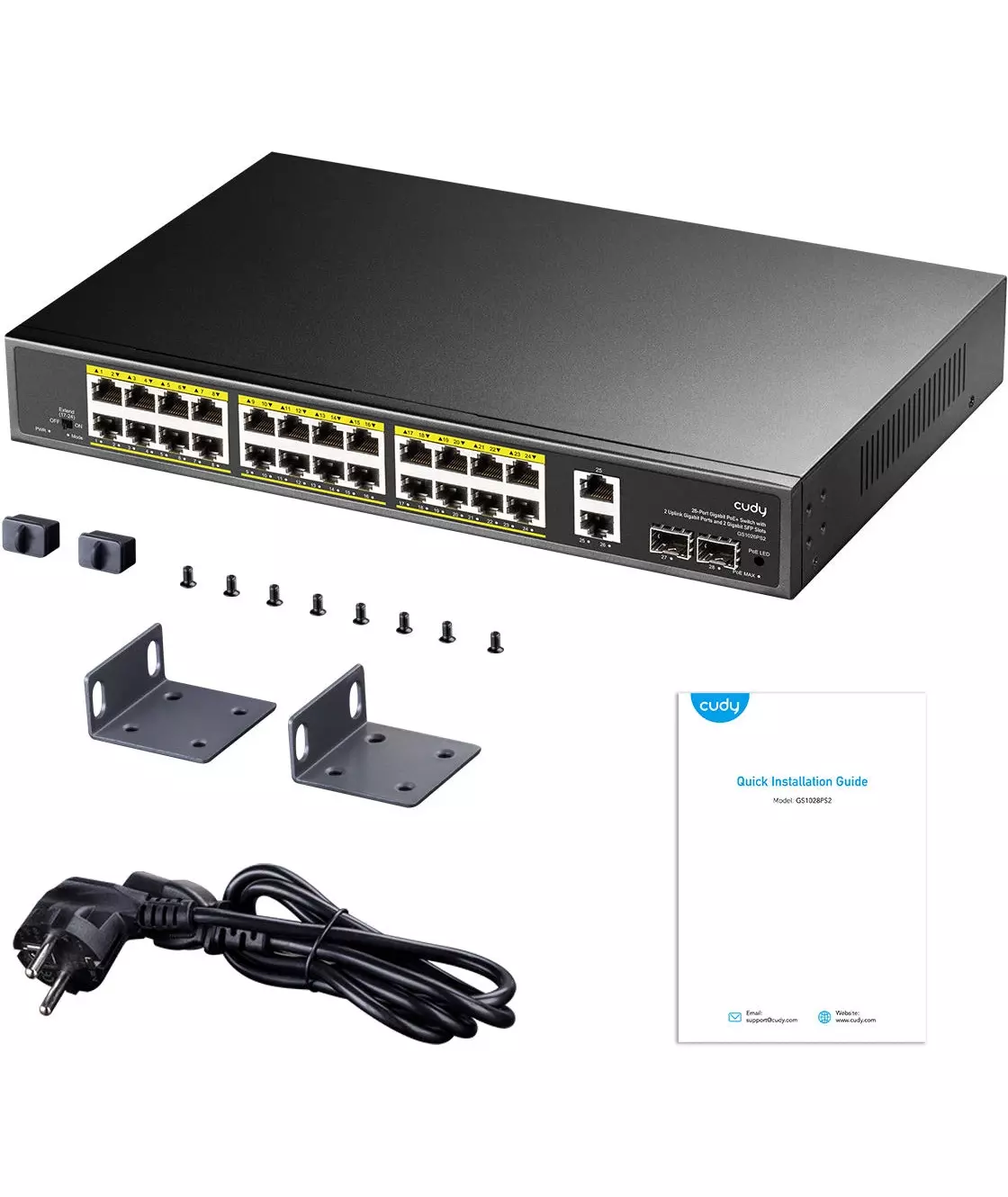 Коммутатор Cudy GS1026PS2 (L2) 26x1Гбит/с 2xКомбо(1000BASE-T/SFP) 2SFP 24PoE 300W неуправляемый