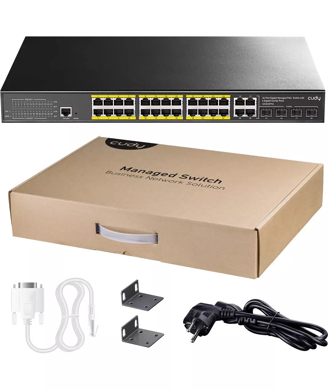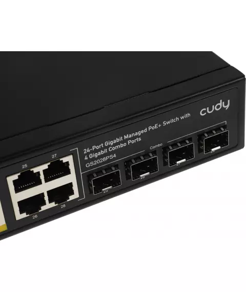 Коммутатор Cudy GS2028PS4-400W (L2) 28x1Гбит/с 4xКомбо(1000BASE-T/SFP) 24PoE 400W управляемый