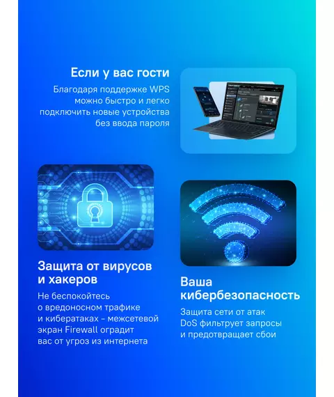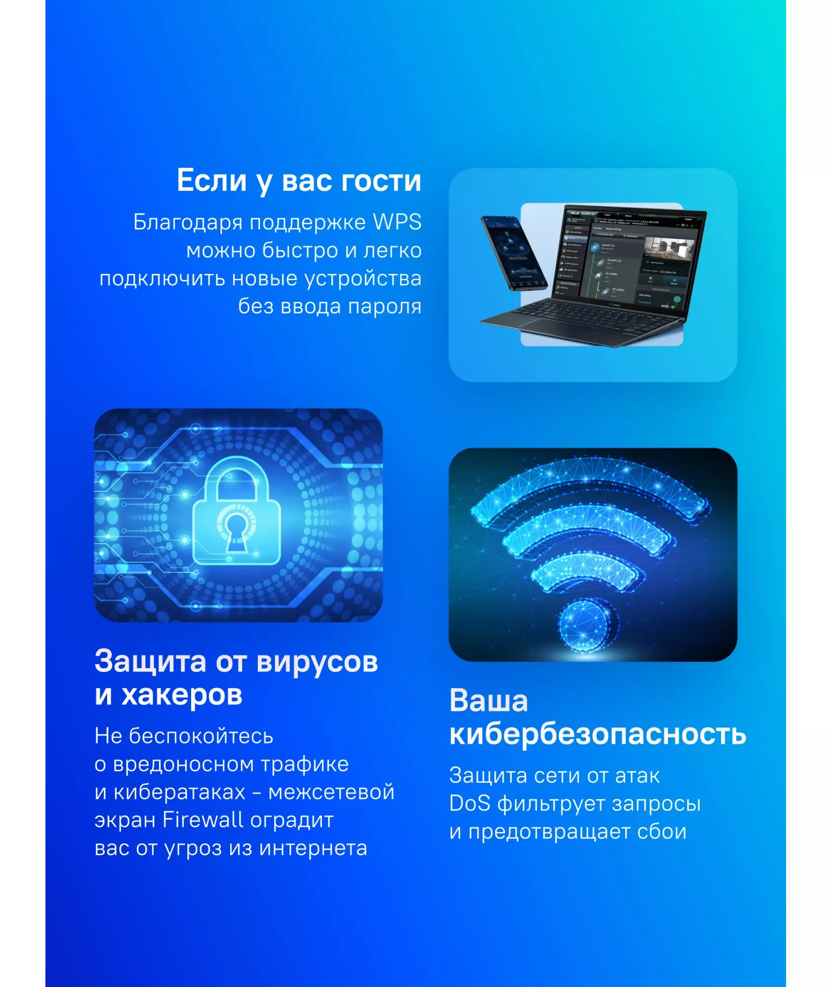 | Средства защиты сети | DMZ, DoS, Firewall, NAT, SPI, гостевая сеть, родительский контроль |