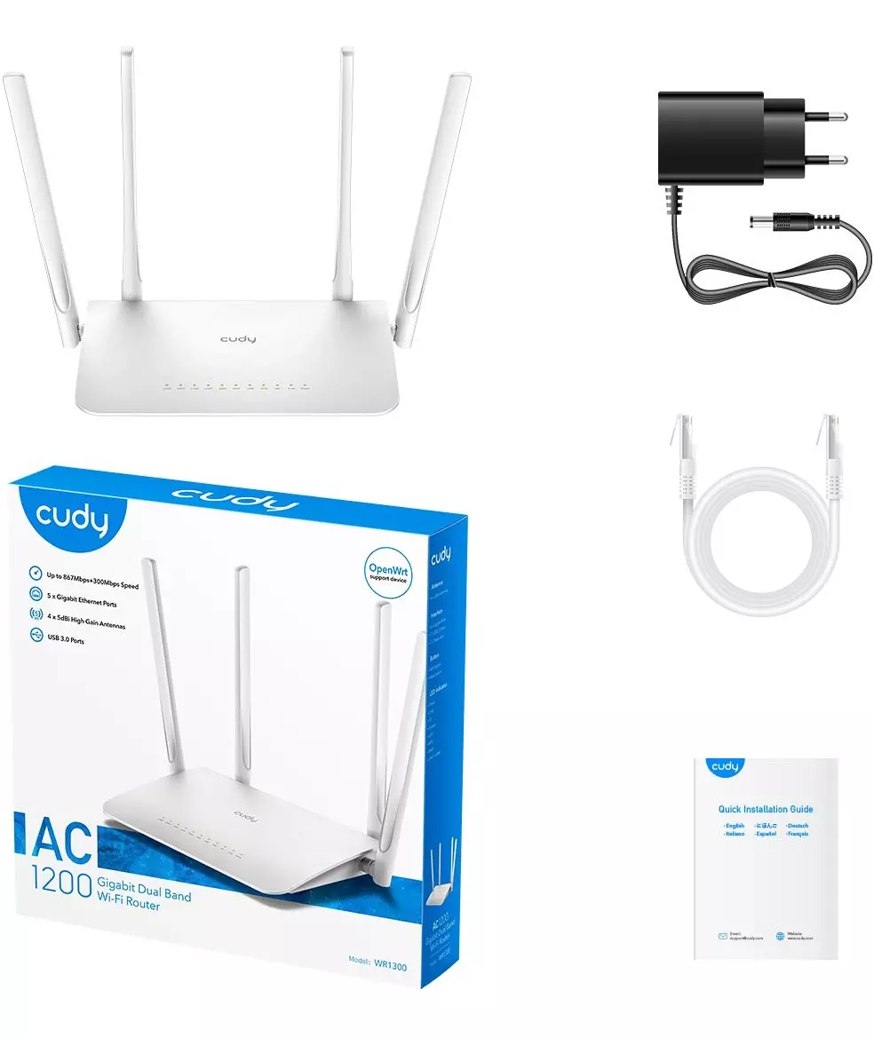 | Комплектация | Маршрутизатор Wi-Fi AC1200, cетевой адаптер питания от 220В (АС), RJ45 Ethernet-кабель, краткое руководство по установке |