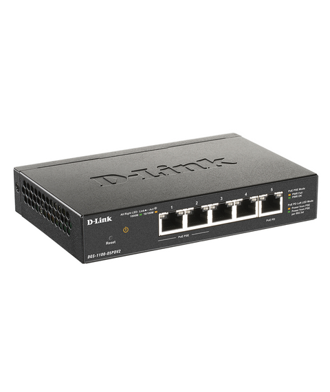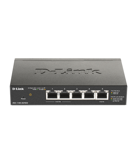Коммутатор D-link DGS-1100-05PDV2/A1A EasySmart L2 Switch 4х1000Base-T (2x1000Base-T PoE), 1x1000Base-T PD PoE, PoE Budget 18W, PD PoE power only