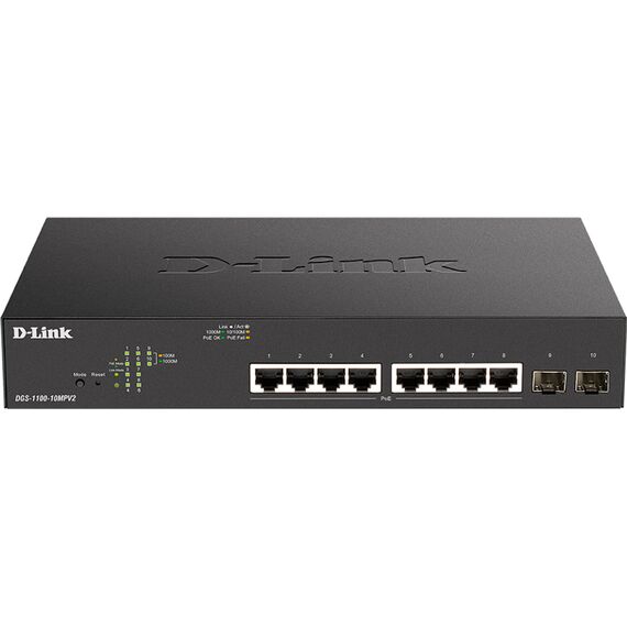 Коммутатор D-link DGS-1100-10MPV2/A3A EasySmart L2 Switch 8х1000Base-T PoE, 2x1000Base-X SFP, PoE Budget 130W