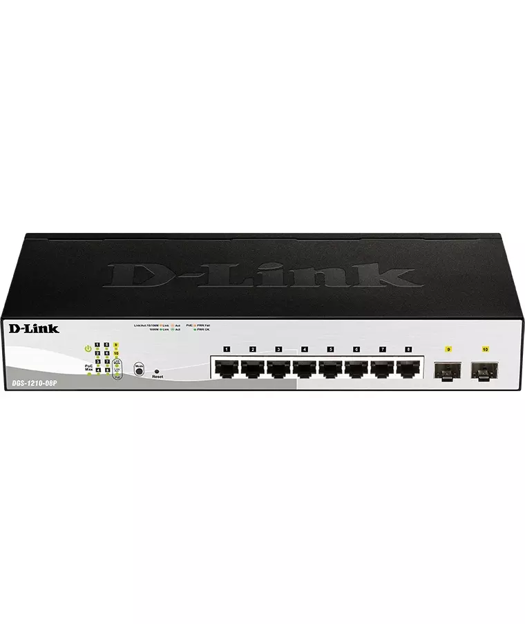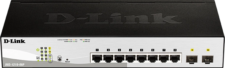 Коммутатор D-link DGS-1210-08P /G3A (L2) 8x1Гбит/с 2SFP 8PoE 65W настраиваемый
