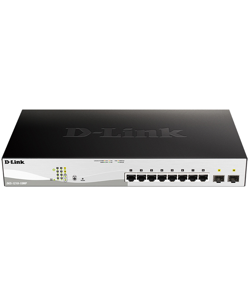 Коммутатор D-link DGS-1210-10MP/FL1A DGS-1210-10MP/FL Managed L2 Switch 8x1000Base-T PoE, 2x1000Base-X SFP, PoE Budget 130W, Surge 6KV, CLI