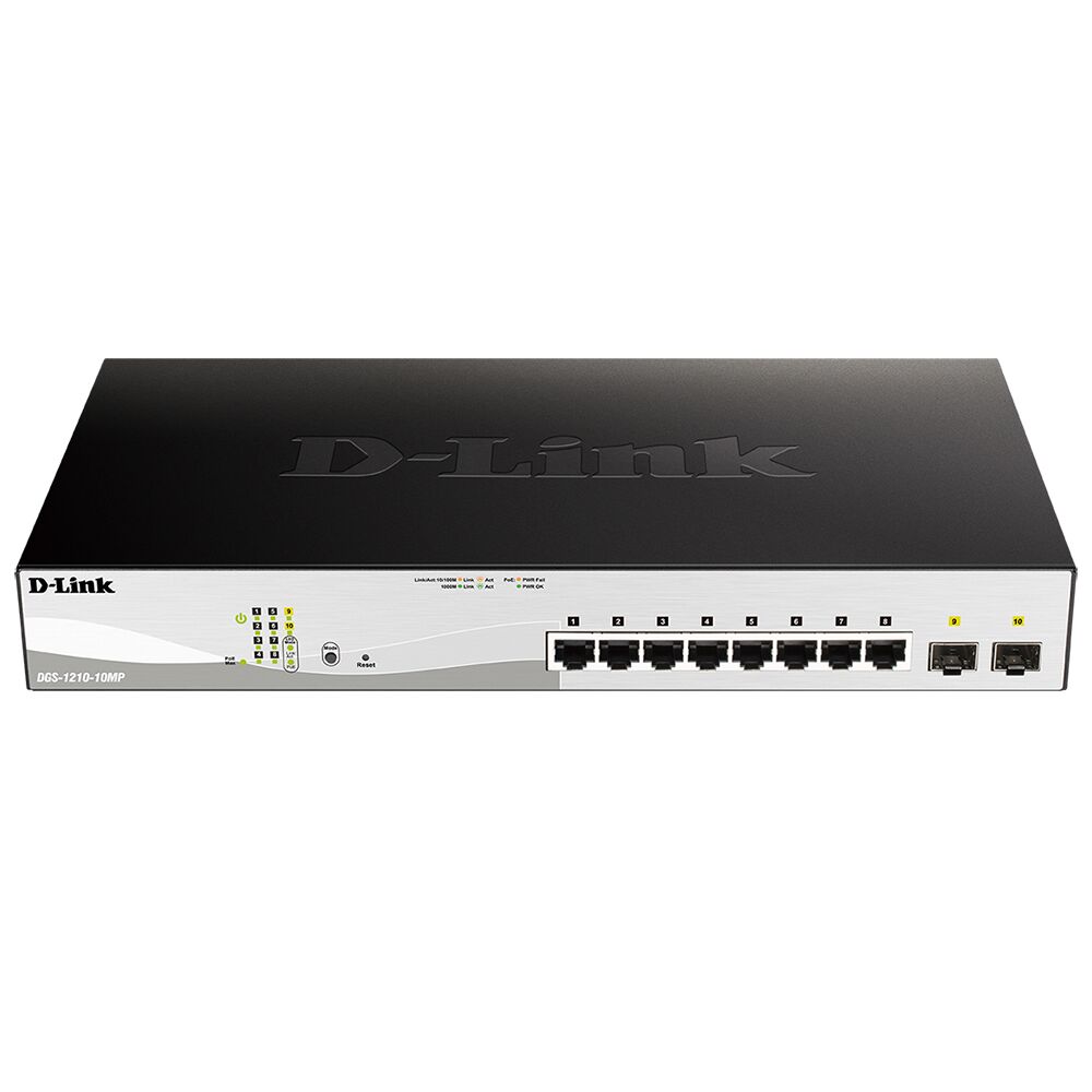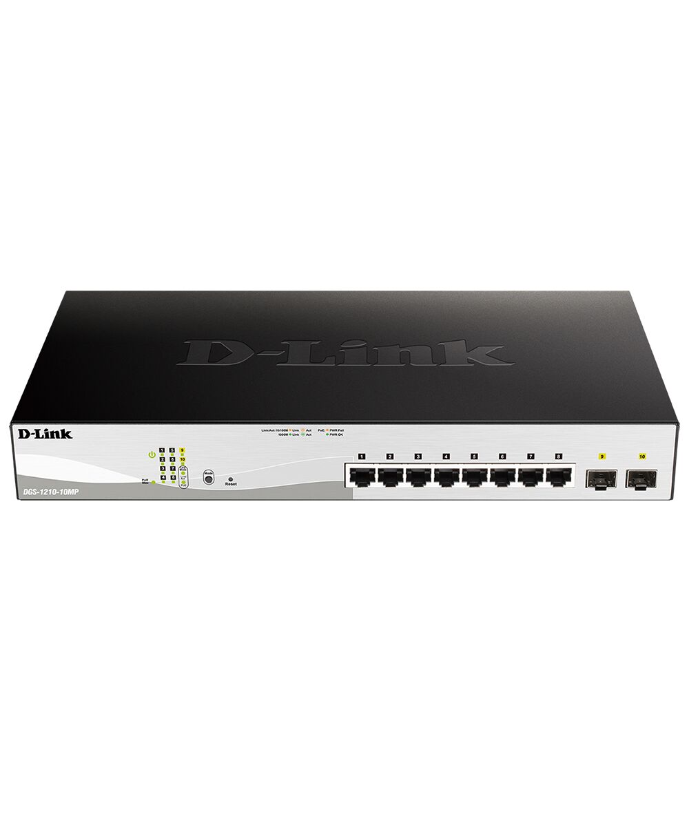 Коммутатор управляемый L2 PoE-коммутатор D-link DGS-1210-10MP/FL2A 8x1000Base-T PoE, 2x1000Base-X SFP, PoE-бюджет 130 Вт, защита от статического электричества до 6 кВ, CLI