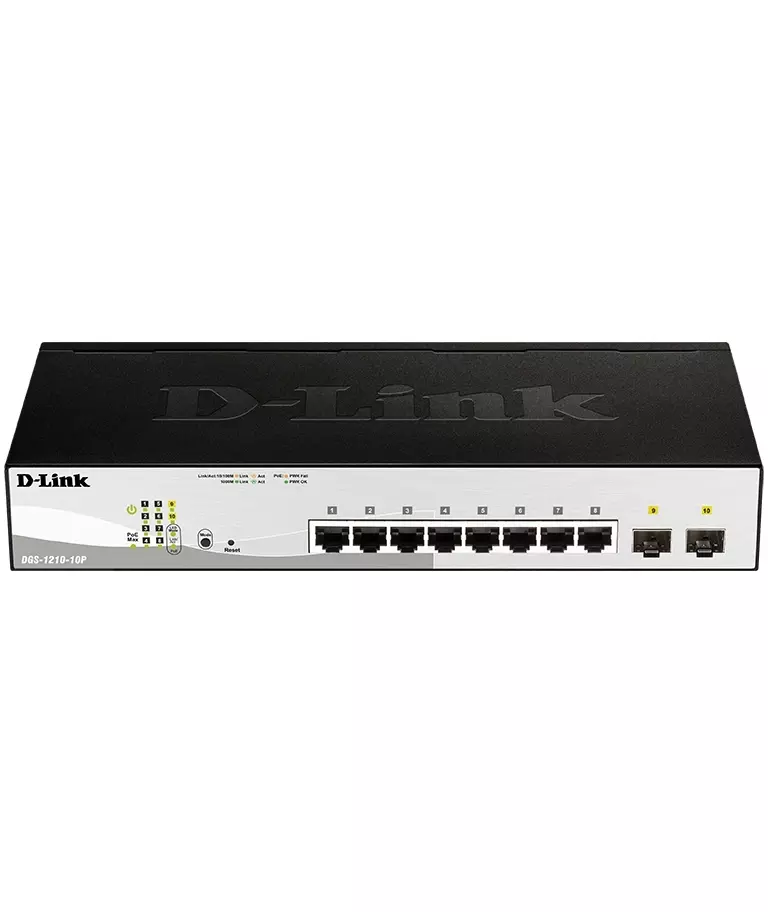 Коммутатор D-link DGS-1210-10P /FL2A (L2+) 8x1Гбит/с 2xКомбо(1000BASE-T/SFP) 8PoE 8PoE+ 65W управляемый