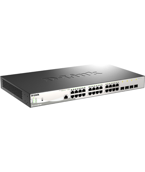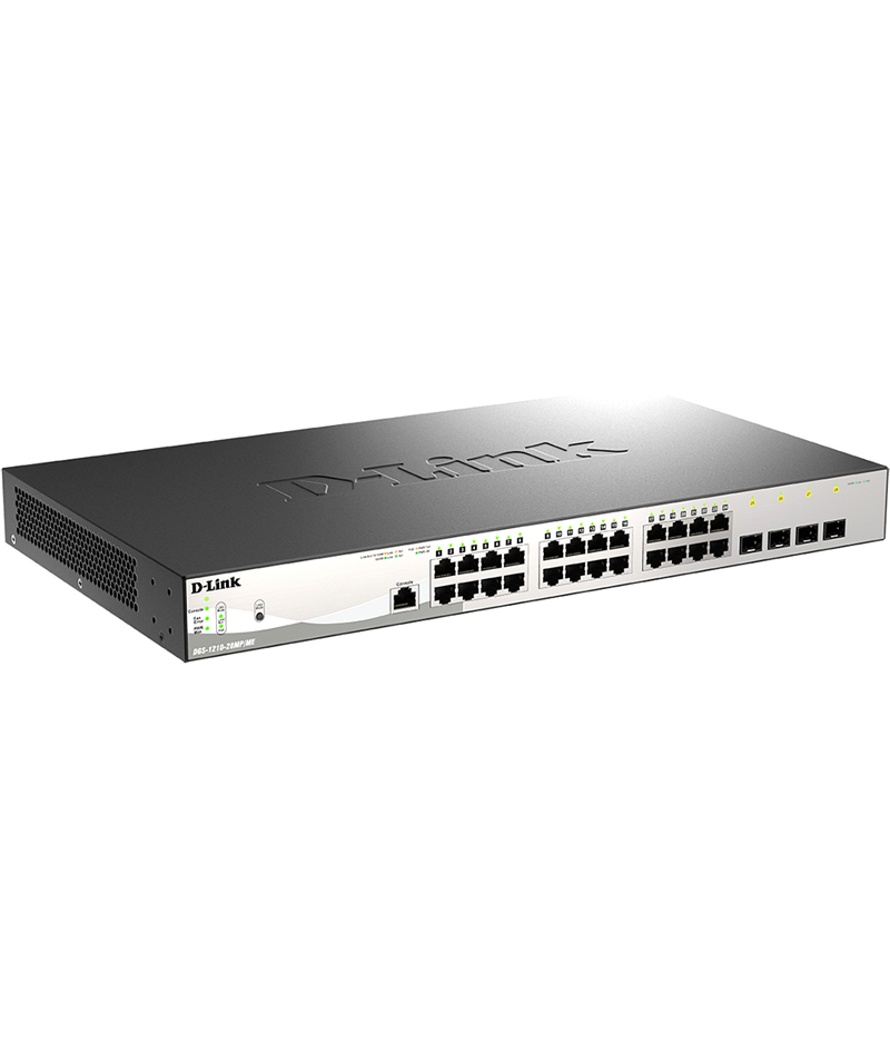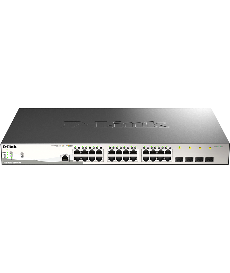 Коммутатор D-link DGS-1210-28MP/ME/B2A Managed L2 Metro Ethernet Switch 24x1000Base-T PoE, 4x1000Base-X SFP, PoE Budget 370W, Surge 6KV, CLI, RJ45 Console, Dying Gasp