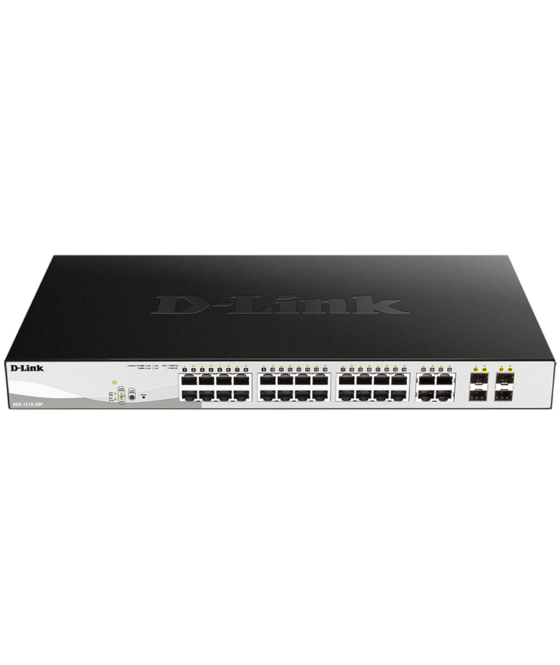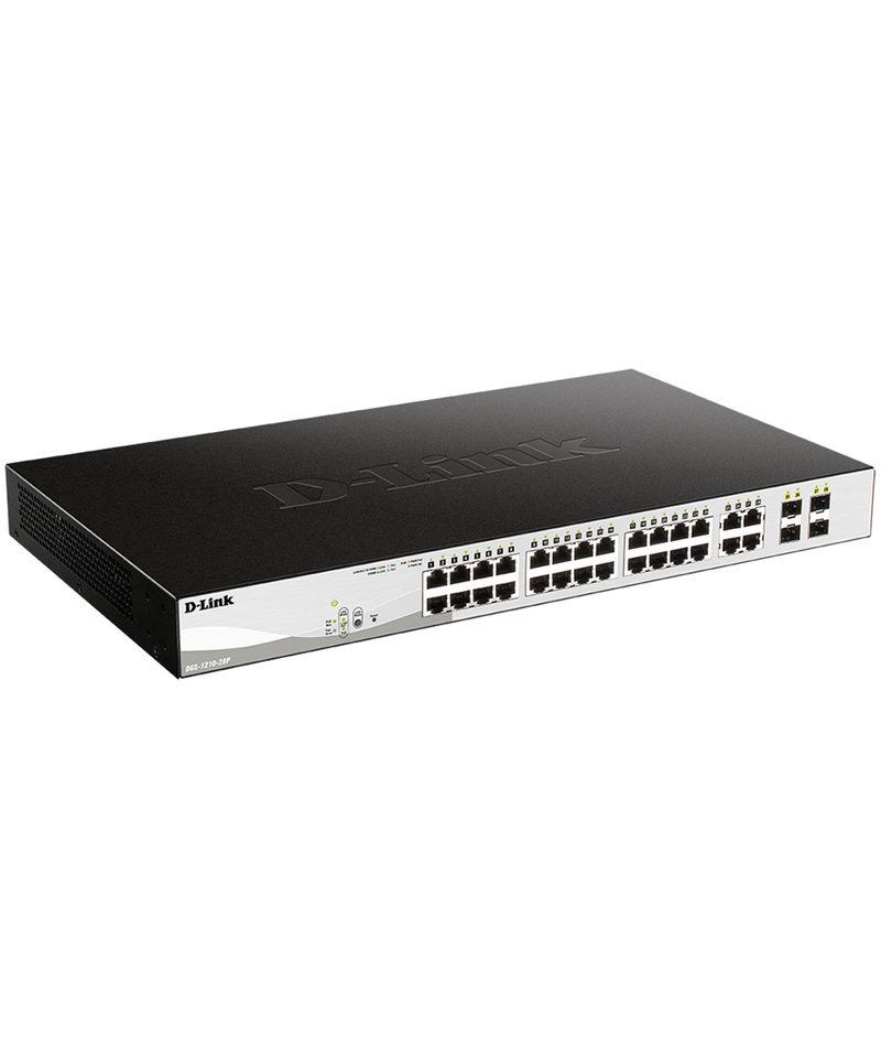 Коммутатор D-link DGS-1210-28P/FL1A Managed L2 Switch 24x1000Base-T PoE, 4xCombo 1000Base-T/SFP, PoE Budget 193W, Surge 6KV, CLI