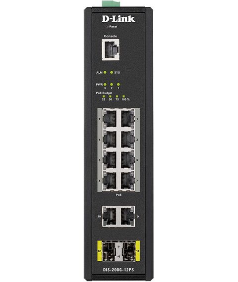 Коммутатор D-link DIS-200G-12PS/A 10x1Гбит/с 2SFP 8PoE 240W управляемый