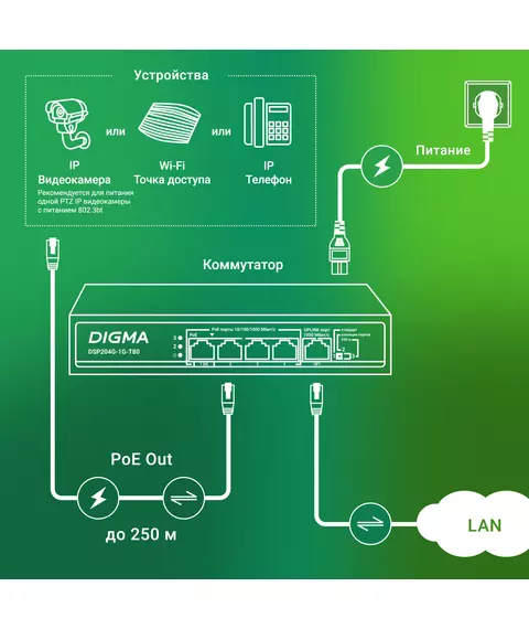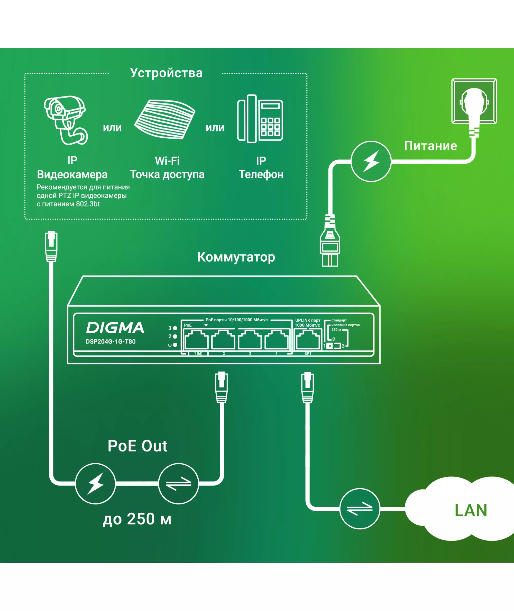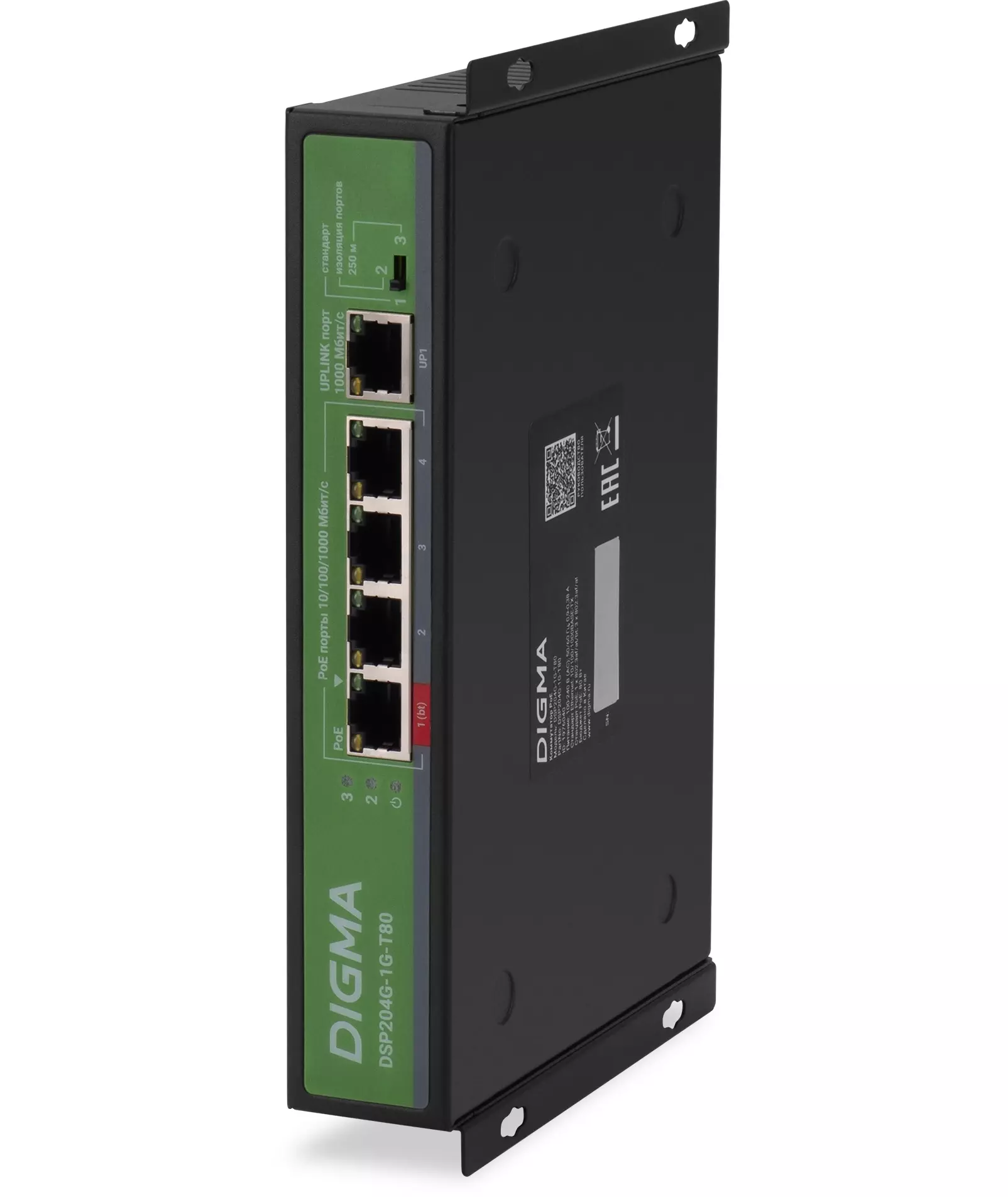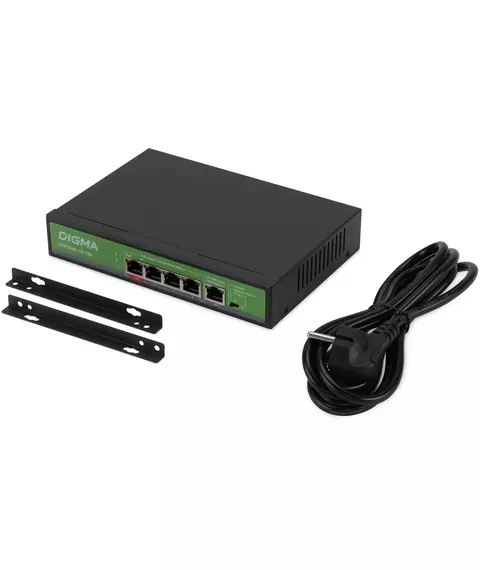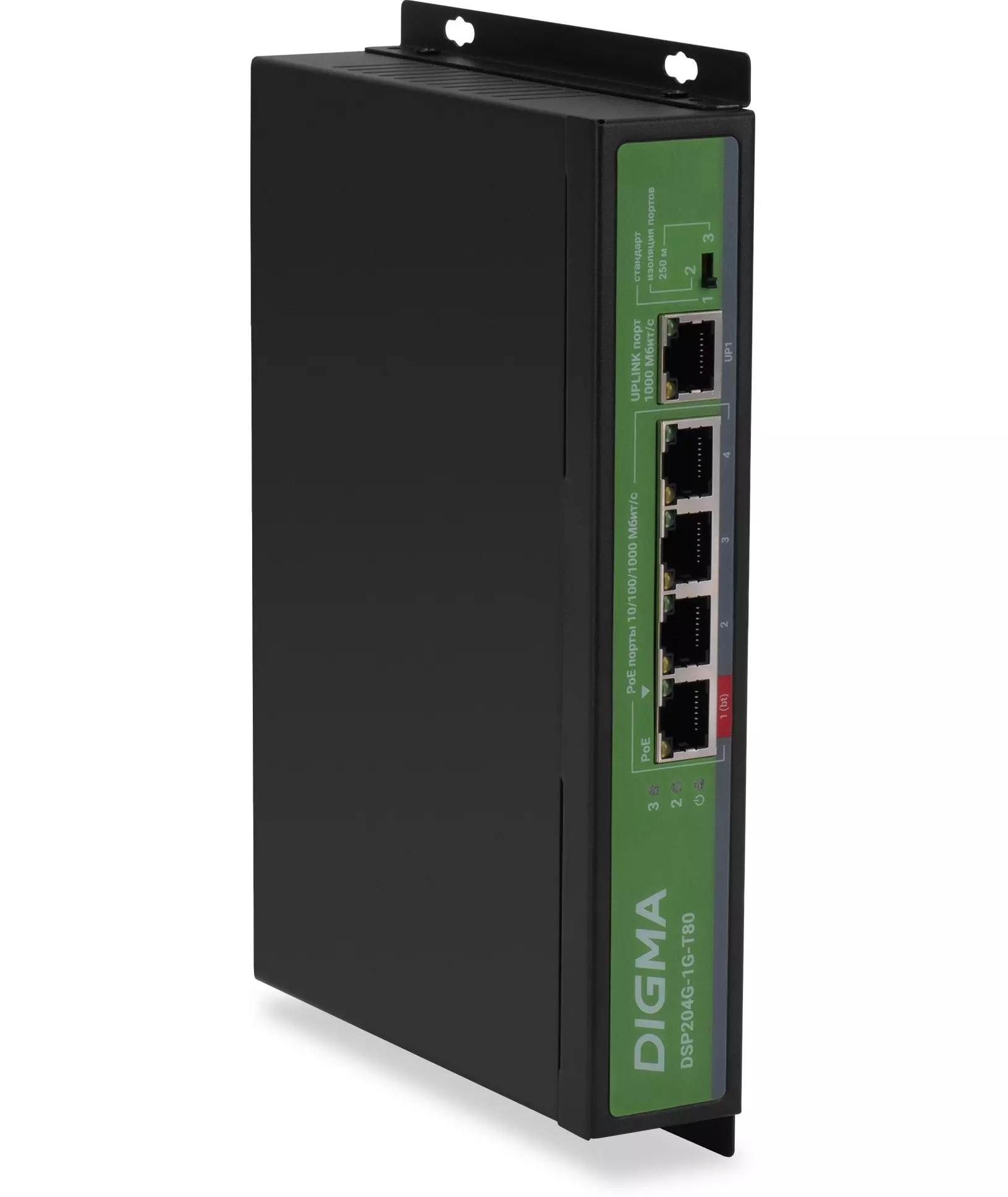 Коммутатор Digma DSP204G-1G-T80 (L2) 5x1Гбит/с 4PoE 4PoE+ 1PoE++ 80W неуправляемый