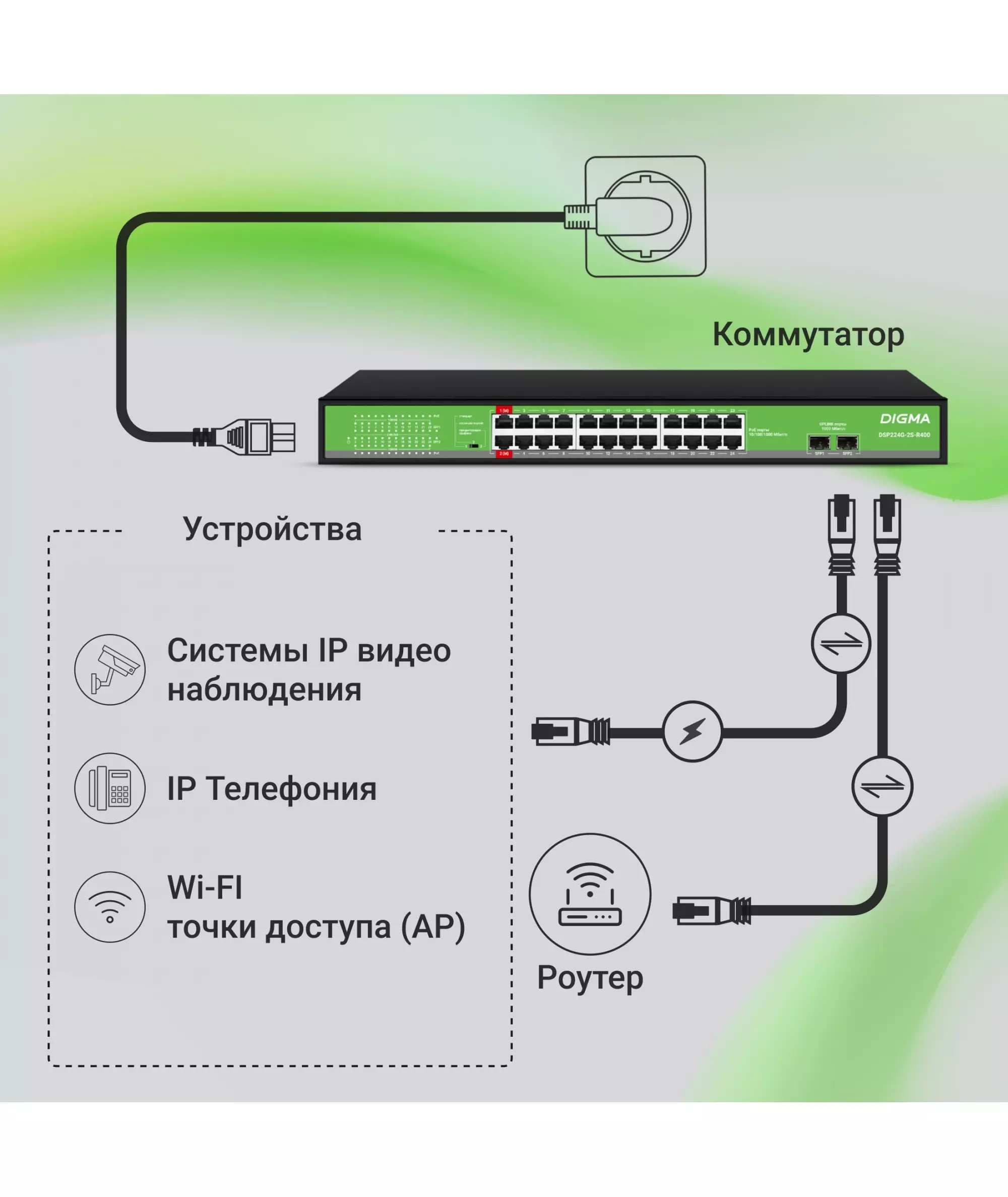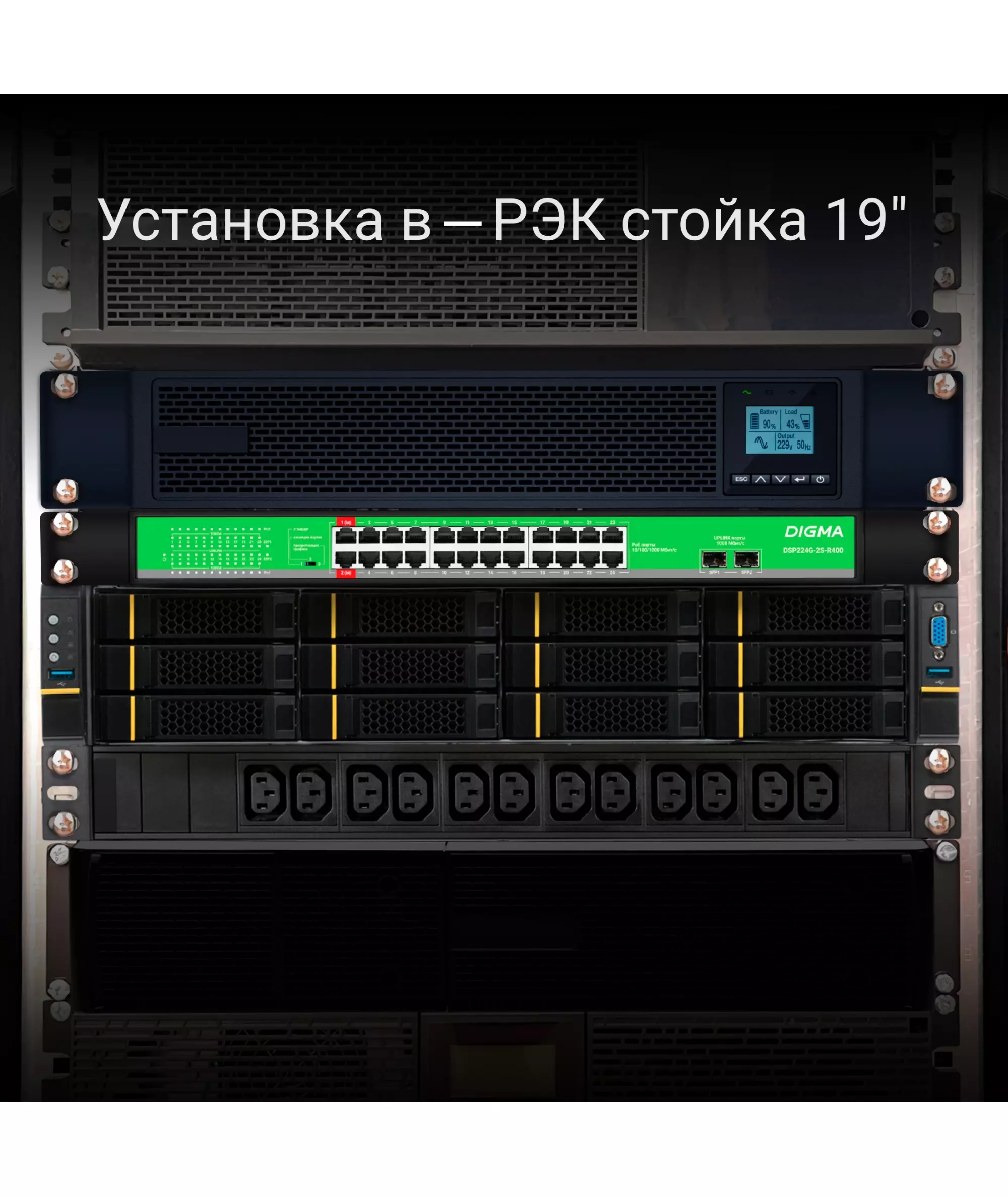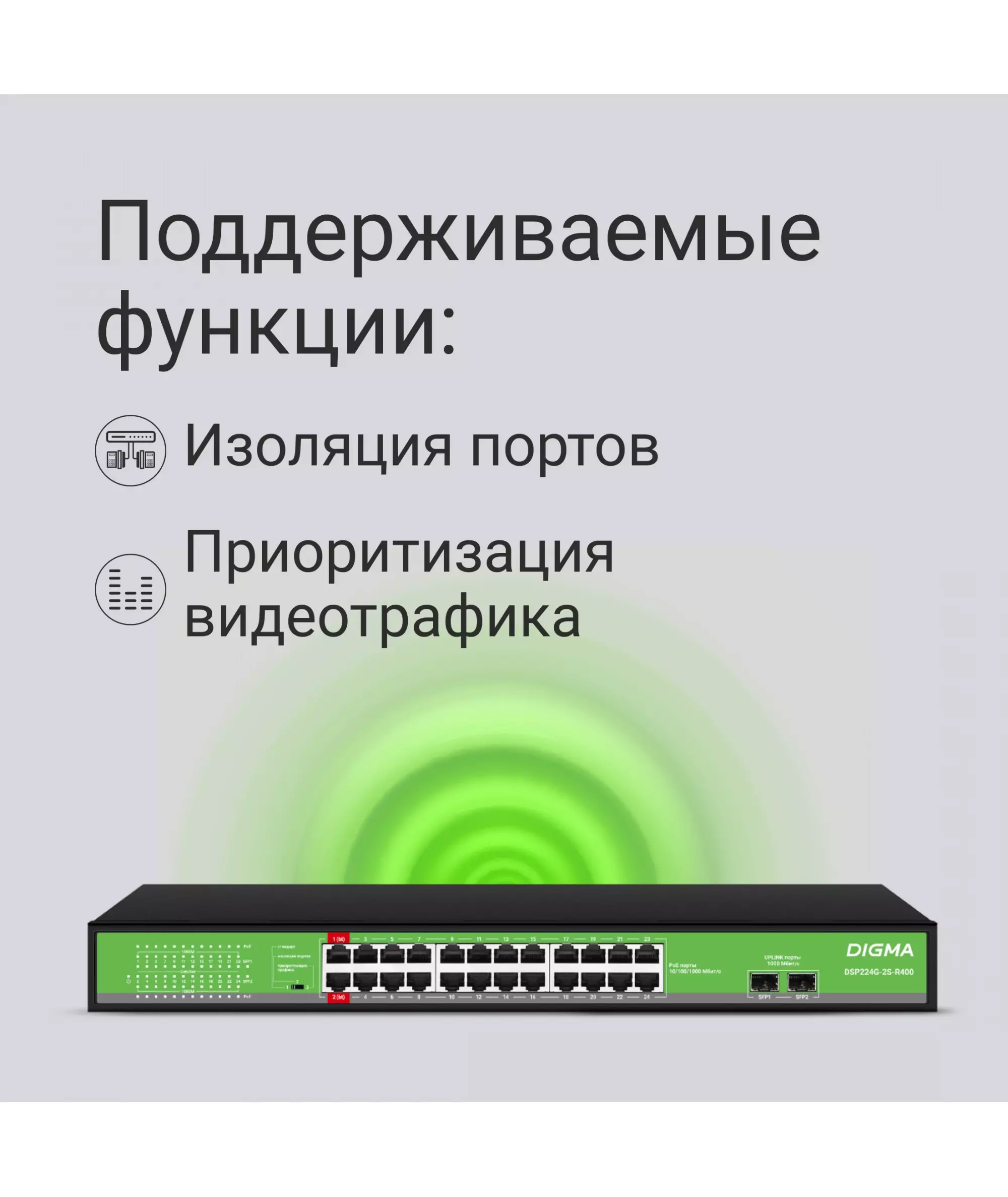 Коммутатор Digma DSP224G-2S-R400 (L2) 24x1Гбит/с 2SFP 24PoE 24PoE+ 2PoE++ 400W неуправляемый