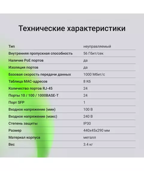 | Порты 10 / 100 / 1000BASE-T | 24 |