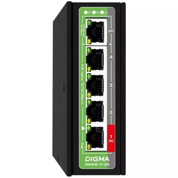 Коммутатор Digma DSP404F-1F-200 (L2) 5x100Мбит/с 4PoE 4PoE+ 1PoE++ 200W неуправляемый