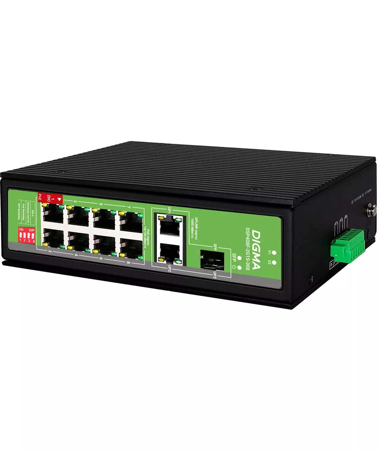 Коммутатор Digma DSP408F-2G1S-300 (L2) 8x100Мбит/с 2x1Гбит/с 1SFP 8PoE 8PoE+ 1PoE++ 300W неуправляемый