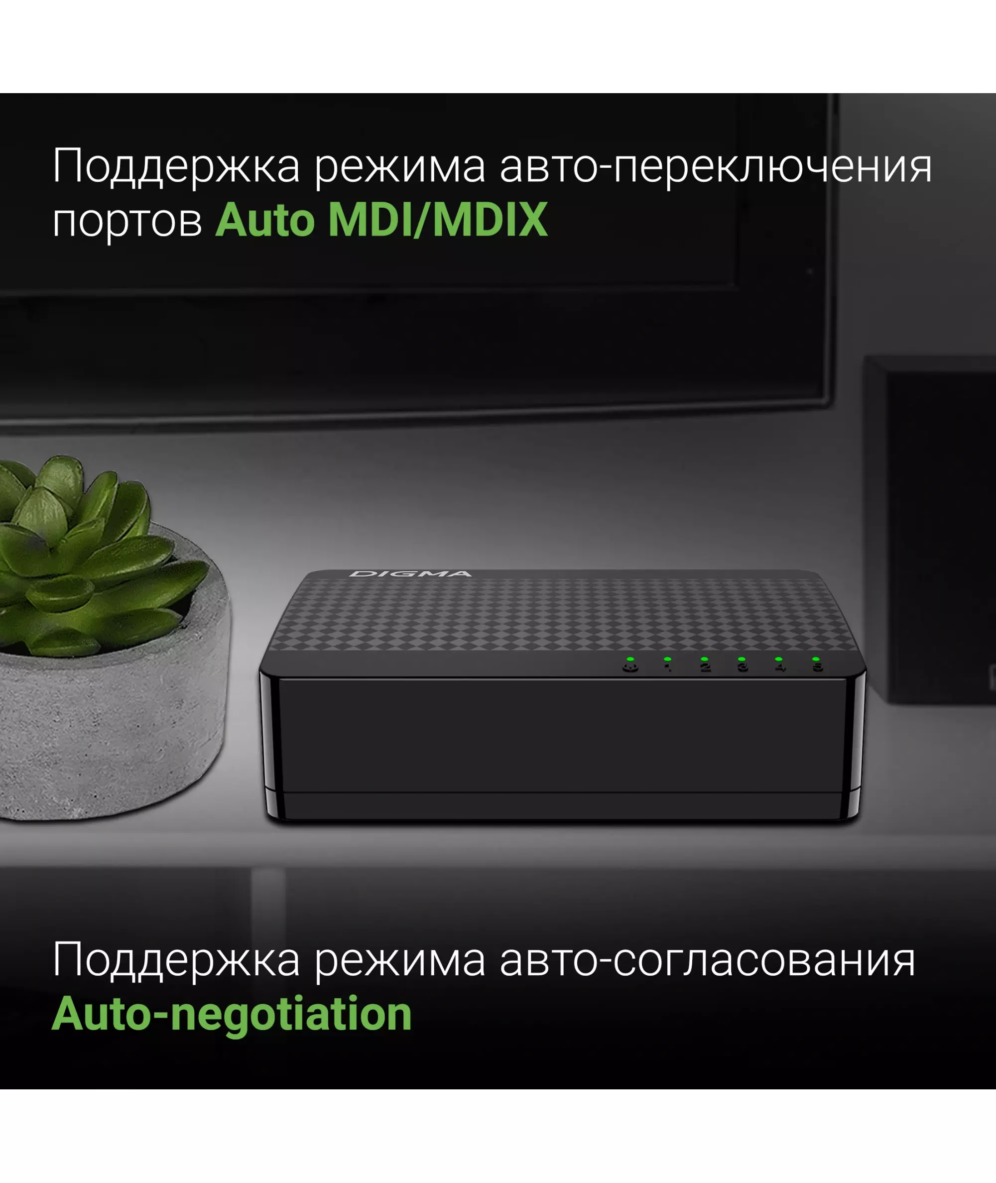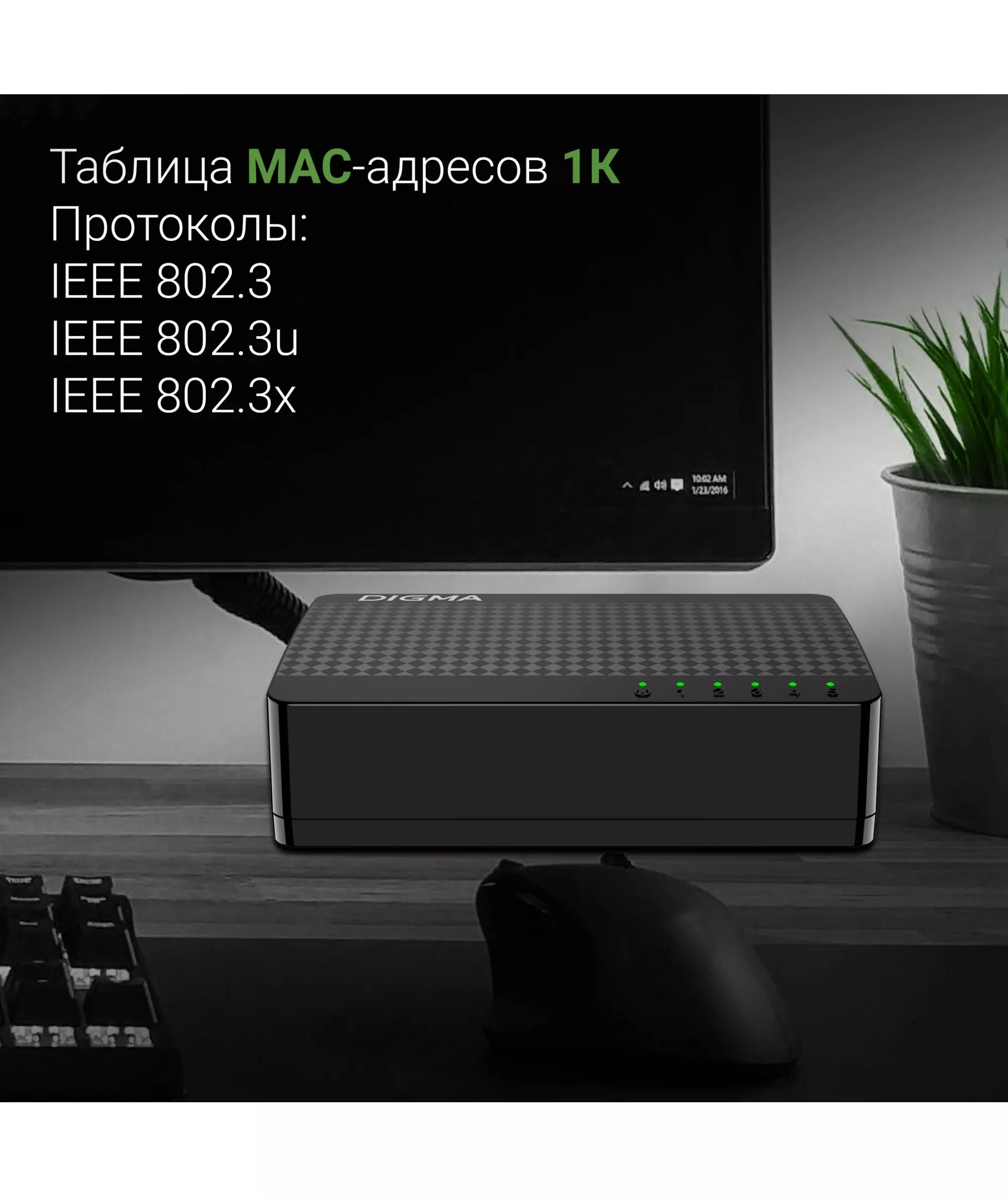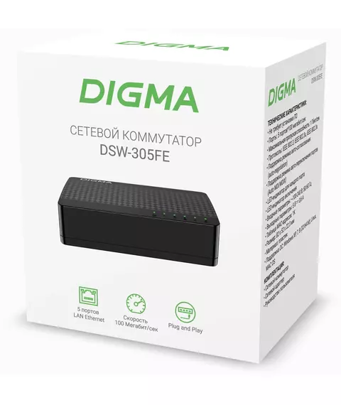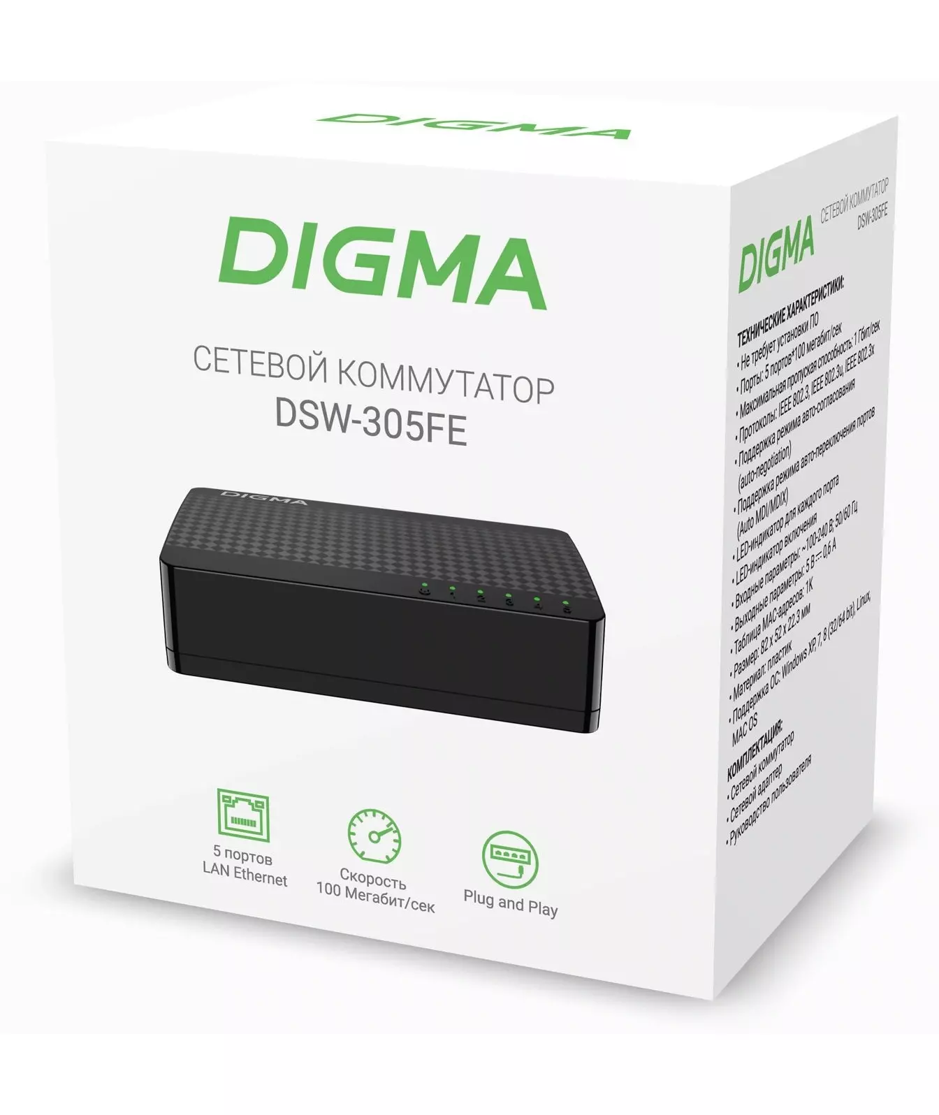 Коммутатор Digma DSW-305FE (L2) 5x100Мбит/с неуправляемый