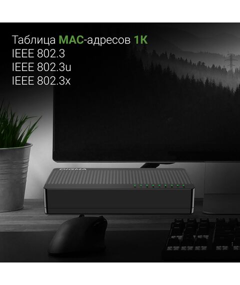 Коммутатор Digma DSW-308FE (L2) 8x100Мбит/с неуправляемый